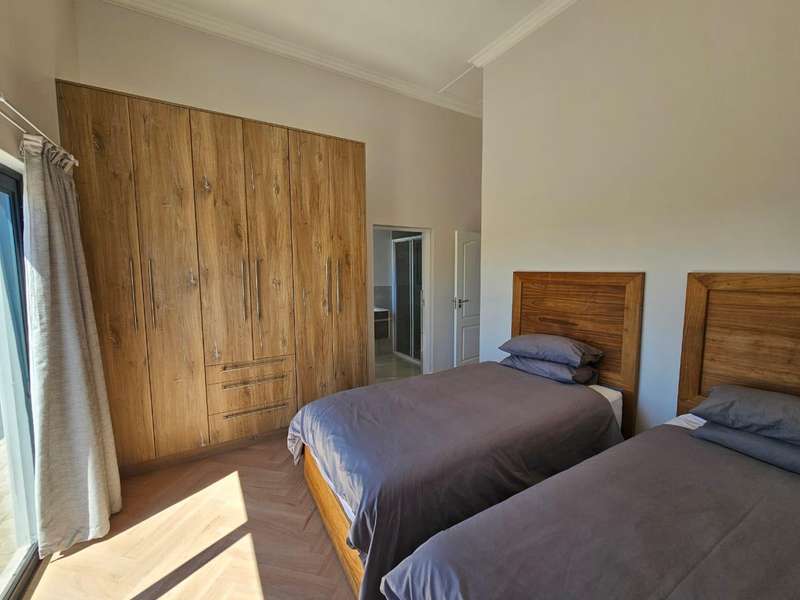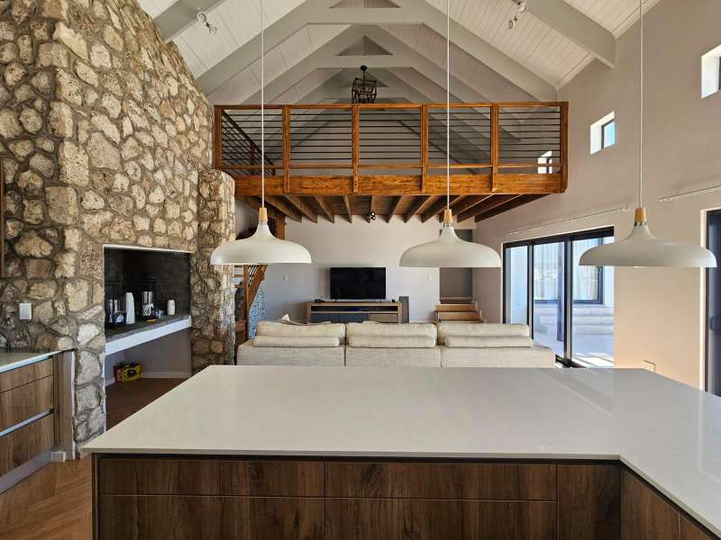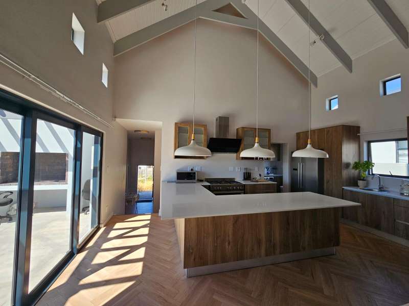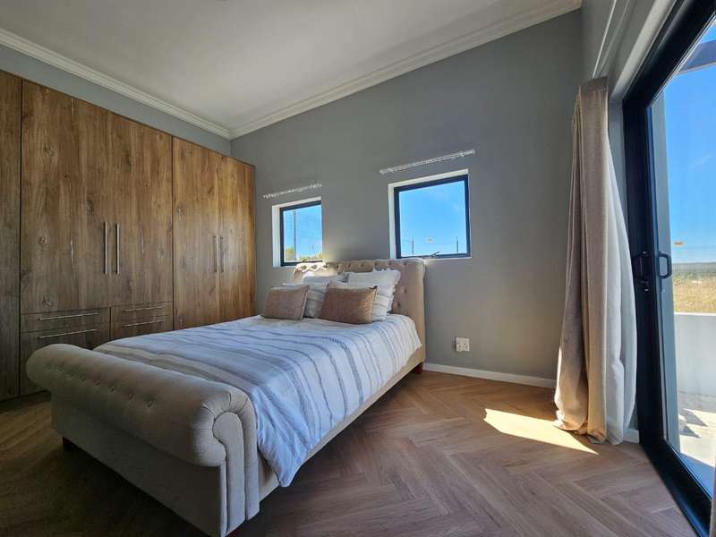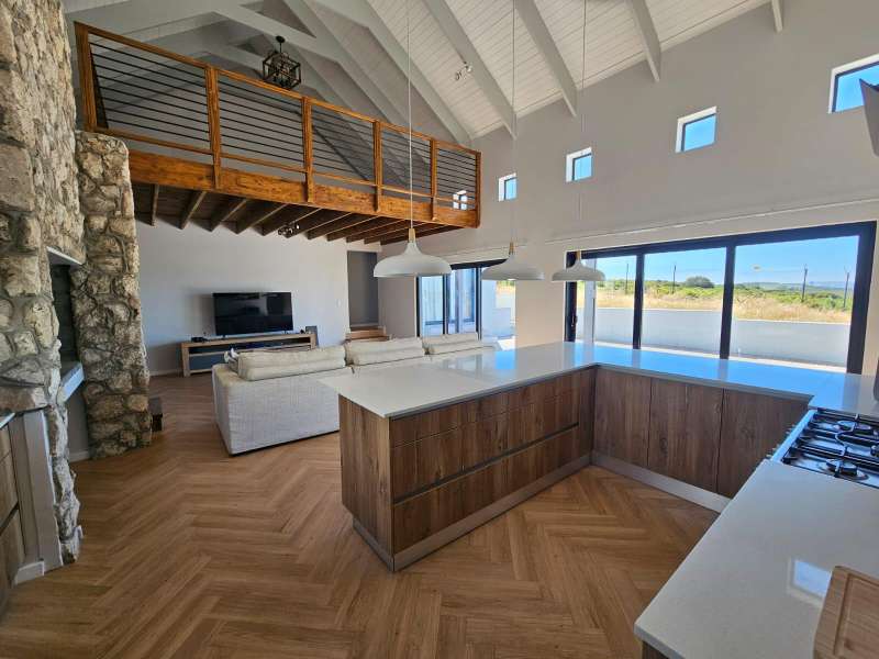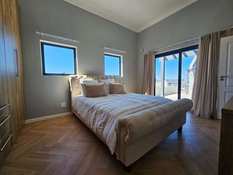 Modern Elegance Meets Light & Space - Exceptional 3 Bedroom Designer Home Step into a home that radiates natural light, space, and style. This beautifully crafted 3 bedroom, 4 bathroom residence offers a seamless blend of luxury and functionality, ideal for modern living and effortless entertaining. Designed with double-volume ceilings, exposed high trusses, and expansive sliding doors throughout, every space flows into the next - opening onto a sun soaked patio that invites the outdoors in. The heart of the home is the open plan living area, where a sleek, modern kitchen with gas stove, central island, and scullery meets a warm and inviting lounge and indoor braai area. For the ultimate entertainer, there?ÇÖs also a dedicated outdoor braai, perfect for long summer evenings. Key Features: 3 Spacious bedrooms - all with en-suite bathrooms and quality finishes 4 Modern bathrooms in total Loft area ideal for a home office, studio, or extra lounge Modern kitchen with gas stove, scullery, and beautiful wooden accents Light-filled spaces with vinyl floors and premium finishes Sliding doors from the kitchen, lounge, and bedrooms to the patio Indoor & outdoor braai areas - entertainer?ÇÖs dream Inverter, solar panels, and solar geyser for energy efficiency Double garage with secure access Security system, alarm, and automated access gate for peace of mind Every inch of this home has been thoughtfully designed ?Çö from the elegant interiors to the smart energy-saving features ?Çö offering a lifestyle of comfort, beauty, and modern convenience. Located in a sought-after neighbourhood of Laguna Ridge, Langebaan, close to all essential amenities, this home is perfect for those who value space, style, and seamless indoor-outdoor living. Make this modern masterpiece your own - enquire today!
