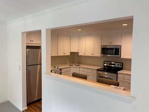 Move right in to this spacious and bright, two bedroom/two bath condo rental at Mallards Landing. The open concept layout has a combined living room/dining room with sliders to a spacious deck and an updated kitchen with stainless steel appliances and breakfast bar. The primary bedroom has an en-suite bath and large closet, and the second bedroom and additional full bath complete this condo rental. Ample storage and laundry in unit. Complex includes an in-ground swimming pool, two assigned parking spots and storage. Enjoy all that Norwalk has to offer -- close to shopping, restaurants and transportation. Tenant responsible for $150 move-in/move-out charges. Condo Association allows one pet per unit, under 25lbs.