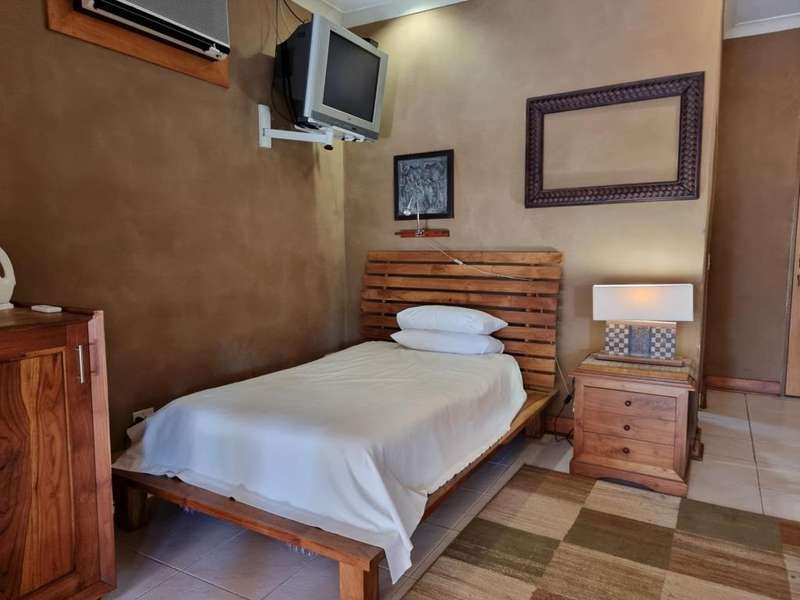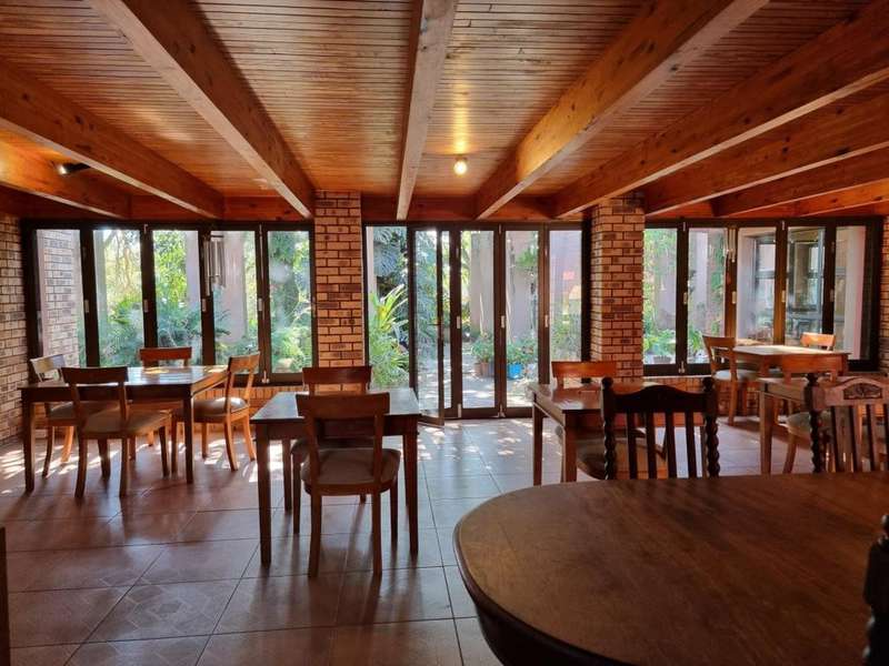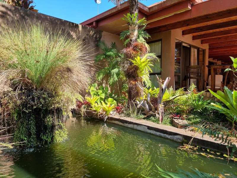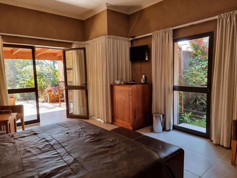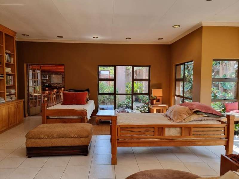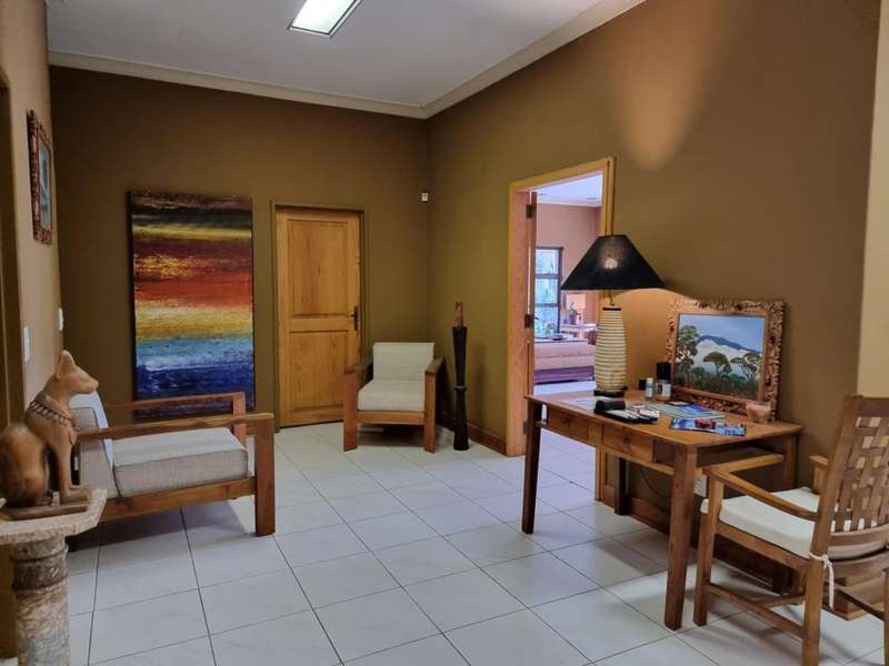 This property is set on a large stand (4200sqm) and is situated in one of the best areas within walking distance to schools. Open plan lounge leading onto the patio, well equipped and spacious kitchen, scullery, laundry, linen cupboards. Solar panels on the roof, large Koi ponds. There is a borehole as well as municipal water and water tanks. Cosy area where you can serve your breakfast or dinner by order. This Guest Lodge is sold as a going concern. All the furniture and equipment are included. No transfer costs as the entire property and business will be a sale of shares as it is in a Close Corporation (CC)