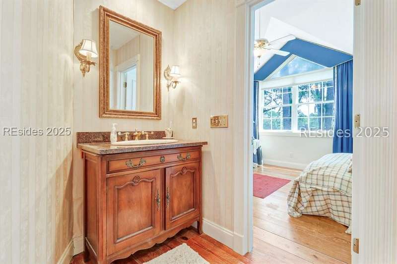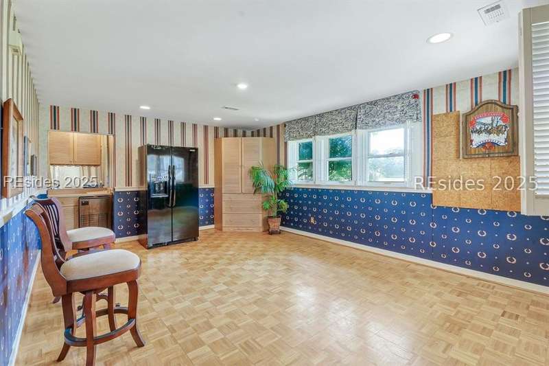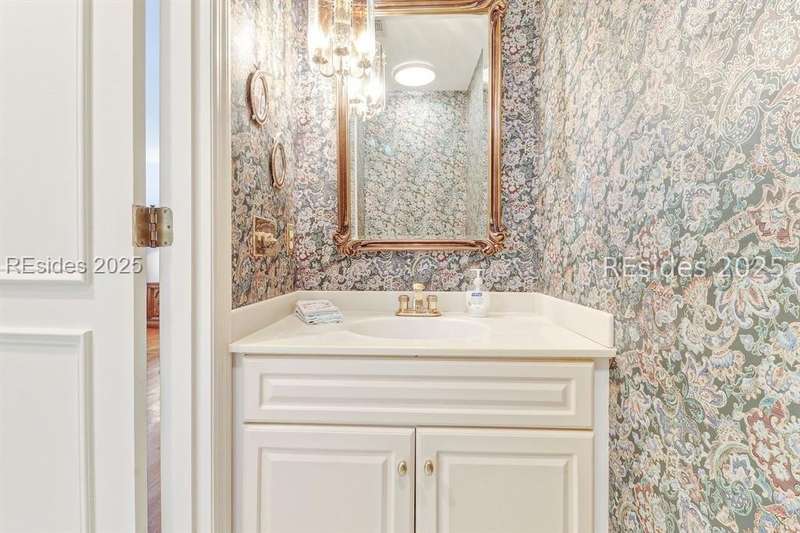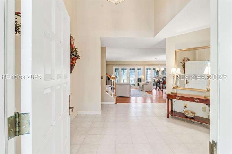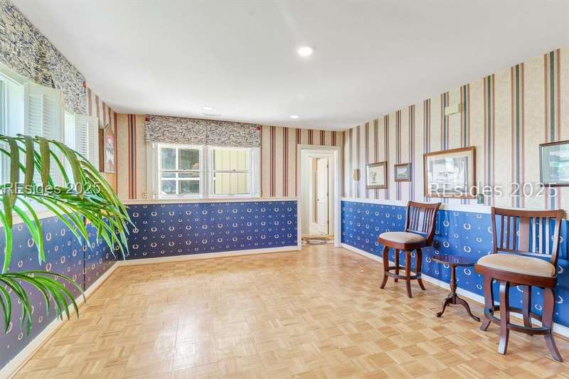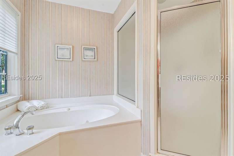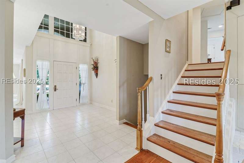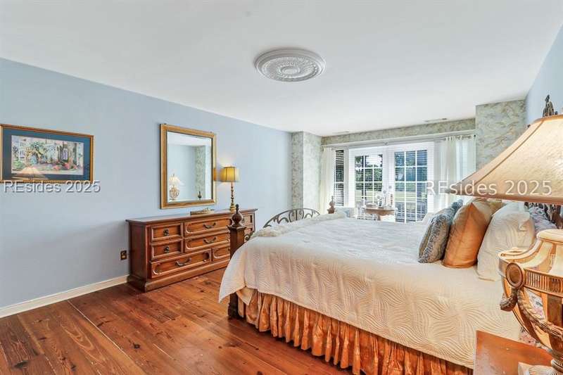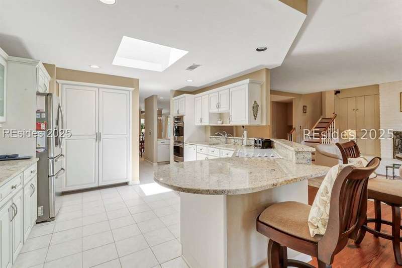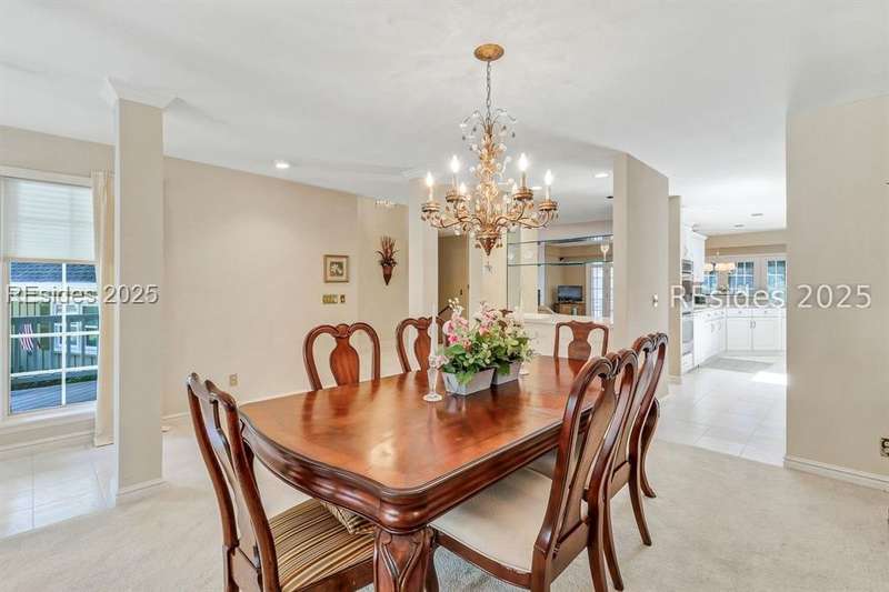 Premium location and exceptional curb appeal combined with multiple golf views make this one of the more desirable locations in Moss Creek. A custom design with an inviting two-story foyer leads to formal living and dining rooms, ideal for entertaining. The updated, spacious Kitchen with skylight opens to the cozy family room with floor-to-ceiling brick fireplace and built-in cabinets. 4 bedrooms, 5 1/2 baths plus a Bonus Room and Office offer space for every lifestyle. The primary suite features dual vanities and a private bathing retreat with shower and soaking tub. Spacious laundry room with skylight. A large three-season Carolina Room with expansive wall of windows captures serene, long views of the golf course and nature with the marsh winding through the back nine of the South course. With a new roof in June 2025, two new HVAC units and water heaters in 2023, this home is waiting for an owner to personalize and make this custom floor plan into a gem of 2025. A rare opportunity in one of Moss Creek's most attractive settings makes this must-see.