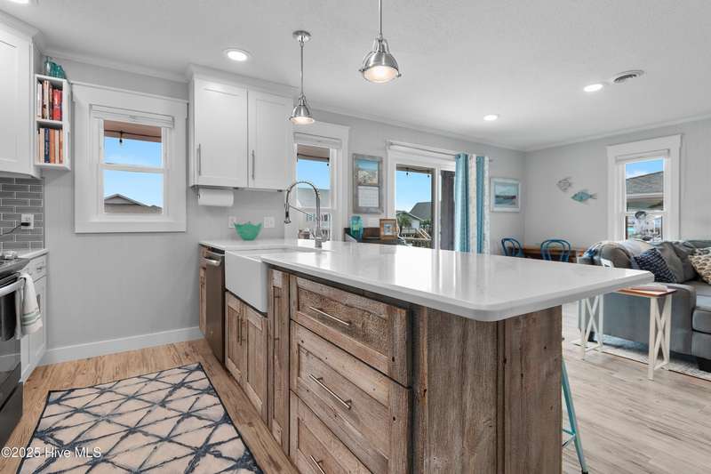 YOUR CANAL THERAPY AWAITS! COZY BEACH COTTAGE BY THE CANAL! If you need a reason to put yourself in TIME OUT on a BOAT or a BEACH CHAIR then call me today! This charming single level canal cottage offers 3 bedrooms and 2 full baths and is perfectly positioned on one of Holden Beach's widest canals! Move in ready, all the updates have been done, this home is ideal for those seeking comfort, relaxation, and the coastal lifestyle. Grab your fishing pole, beach towels, & floats because this beach home is ready for new owners. Open concept to accommodate family or friend gatherings. Updated Kitchen offers a custom built cabinetry with reclaimed barn wood and white cabinets, quartz countertops, and SS Appliances. Kitchen and Living room overlook the canal. Lots of storage underneath. Breath in and exhale fresh coastal air on the front or rear decks. Backyard of dreams for the fisherman with fixed & floating dock with an extra wide aluminum ramp. Storage area large enough for a golf cart, separate storage room underneath, and Outdoor Shower. Perfect for family getaways, full-time living, or investment property.