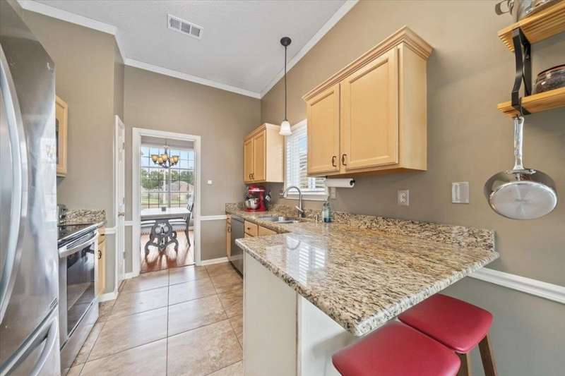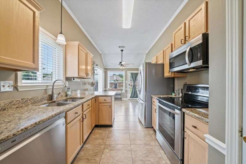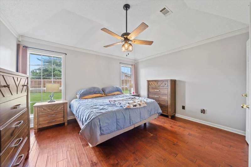 PRICE REDUCTION! PLUS SELLER offering $5,000 buyer CLOSING COSTS w/acceptable offer. Great house in cove, Quail Ridge Subd. From foyer, enter huge great rm w/fireplace & wood fls. Downstairs floors are either wood or tile & high ceilings make rooms feel open & spacious. Primary bedrm down w/bathroom renovation 2020, enlarged shower, granite dble sink vanity, mirrors, light fixtures, walk in closet. Granite counters in 1/2 bath & kitchen. Kitchen w/ brkfast area, pantry, LG appliances, microwave & natural light. Several light fixtures & windows replaced(2023) Upstairs offers 2 bdrms & shared bath plus walk-in attic. These floors were replaced in 2020. Great entertaining backyard & lots of space for children. Patio, firepit, hot tub(2023), new fence (2023) with single & double gates. Extra parking space w/ added concrete pad,(2021) HVAC replaced (2020). Washer, dryer and fridge remain "as is" & not warranted. *Westinghouse fuel generator w/ remote start*