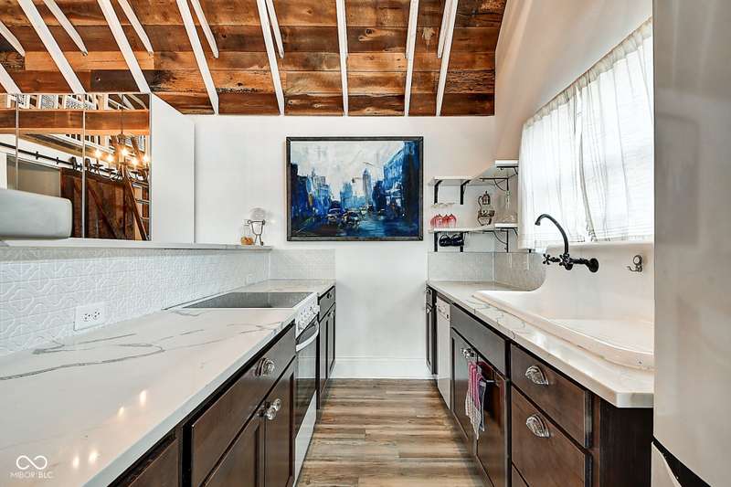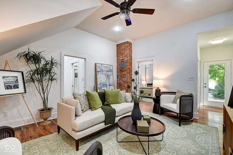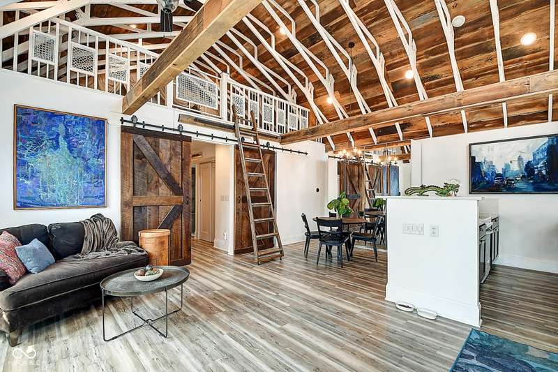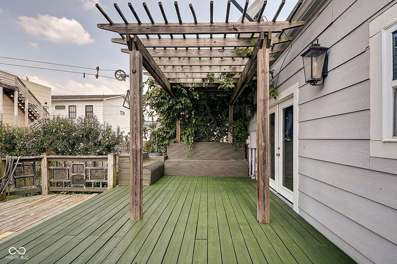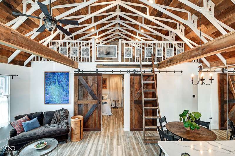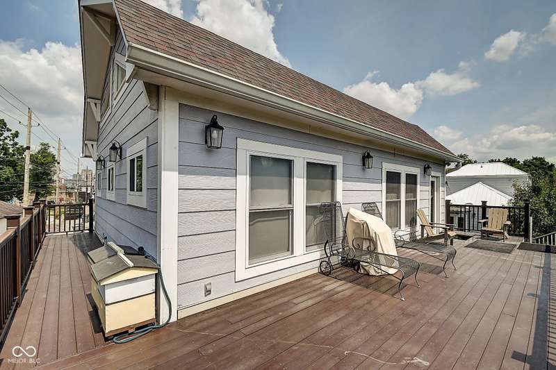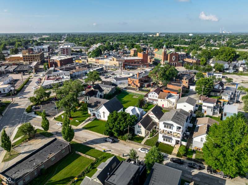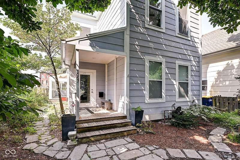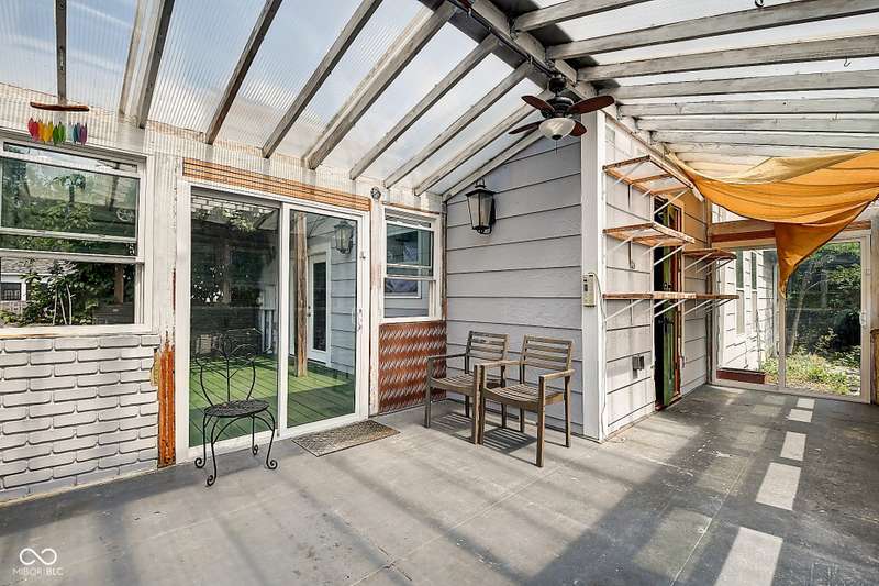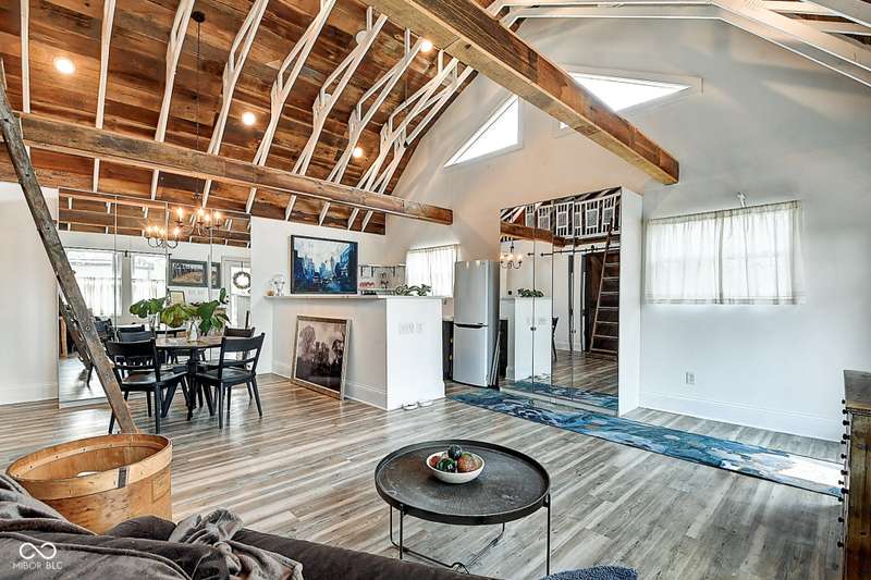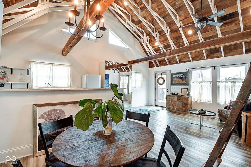 Mamma Chick's Urban Farm is on the market! The personal residence of Karen - the beloved star of HGTV's Good Bones and Two Chicks and a Hammer - is now available for the first time in years. Nestled in the North Square neighborhood of Fountain Square, this one-of-a-kind property blends urban farming, creative living, and historic charm into a true lifestyle experience. A towering Magnolia tree and lush vegetation create shade, privacy, and a warm welcome in the front yard. Step inside to a comfortable living room that feels instantly inviting. The spacious kitchen is the heart of the home - featuring a one-of-a-kind bar salvaged from the Indianapolis Repertory Theatre that offers incredible storage and becomes a natural gathering place when entertaining. At one end of the kitchen, the dining area opens through double doors to a large deck and backyard - perfect for al fresco meals. The highly sought-after main-floor primary suite is conveniently located on the main level, along with a second bedroom ideal for a home office or creative workspace. Upstairs, you'll find an airy loft/family room, a full bath, and two generously sized bedrooms. Special touches abound: an attached greenhouse for plant lovers, a cozy speakeasy-style wine room in the basement for late-night gatherings, and a privacy-fenced backyard teeming with mature plants, garden space, and a chicken coop for the aspiring urban farmer. Car enthusiasts and hobbyists will love the oversized 3+ car garage, offering plenty of space to tinker and store tools. Above the garage, the carriage house apartment is a showstopper - soaring ceilings, an open living/dining area with a custom fully-applianced kitchen, a private bedroom and bath suite, and an amazing loft space perfect for a second bedroom, art studio, or lounge. Zoned both commercial and residential, the possibilities here are endless - from private residence to creative live/work space. This is more than a home - it's a lifestyle statement!!