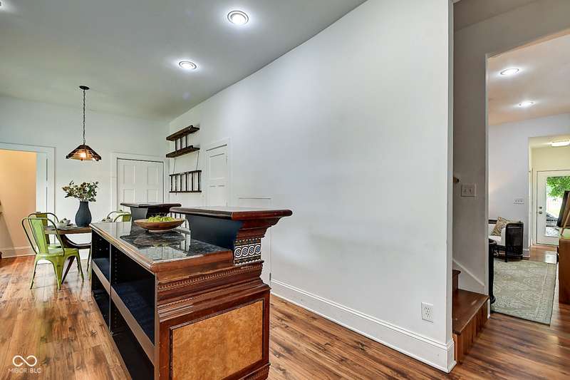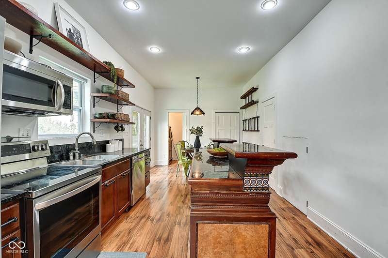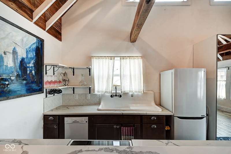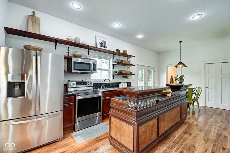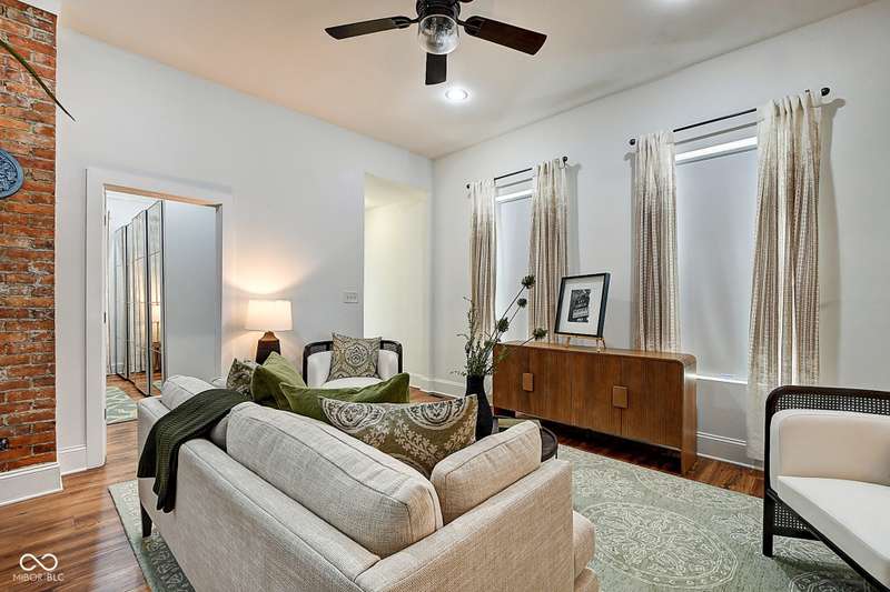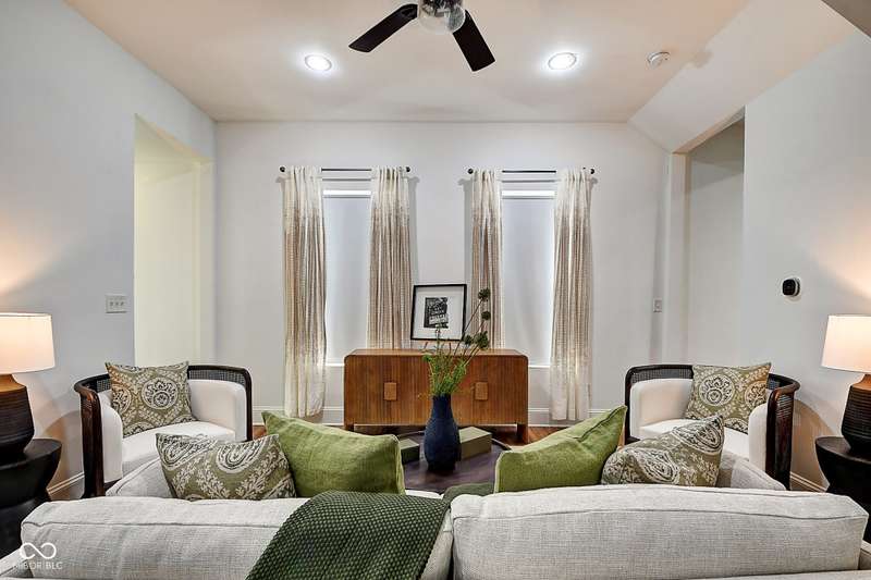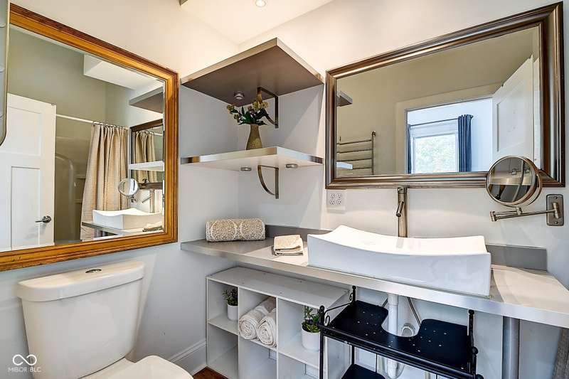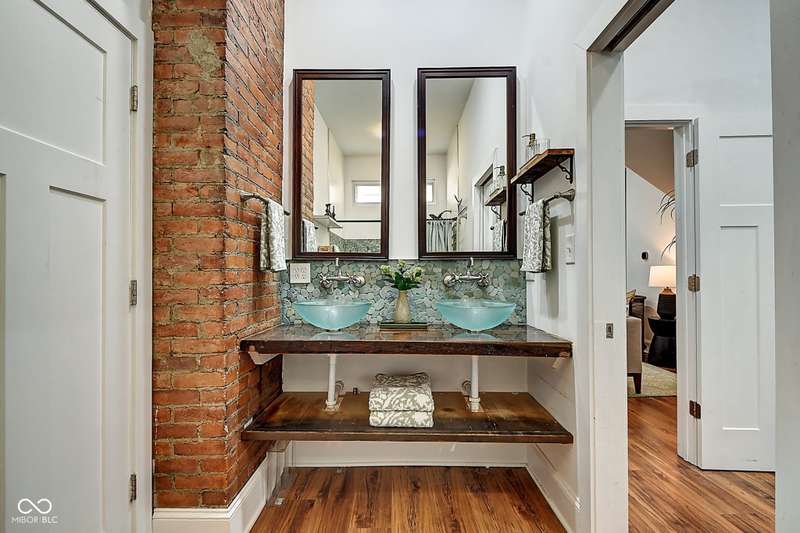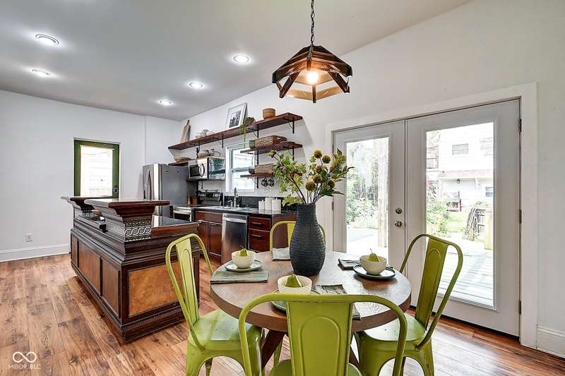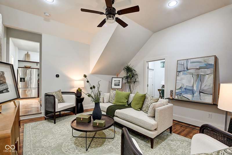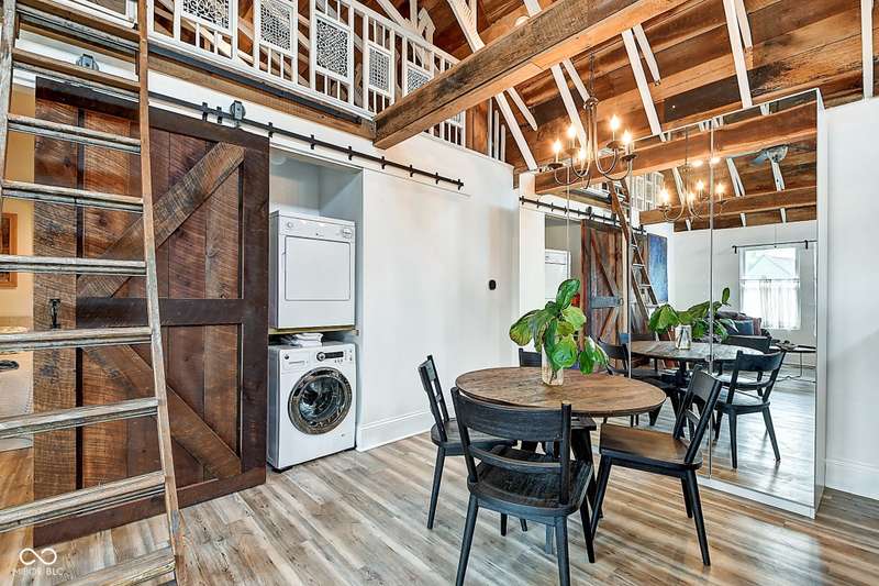 Mamma Chick's Urban Farm is on the market! The personal residence of Karen - the beloved star of HGTV's Good Bones and Two Chicks and a Hammer - is now available for the first time in years. Nestled in the North Square neighborhood of Fountain Square, this one-of-a-kind property blends urban farming, creative living, and historic charm into a true lifestyle experience. A towering Magnolia tree and lush vegetation create shade, privacy, and a warm welcome in the front yard. Step inside to a comfortable living room that feels instantly inviting. The spacious kitchen is the heart of the home - featuring a one-of-a-kind bar salvaged from the Indianapolis Repertory Theatre that offers incredible storage and becomes a natural gathering place when entertaining. At one end of the kitchen, the dining area opens through double doors to a large deck and backyard - perfect for al fresco meals. The highly sought-after main-floor primary suite is conveniently located on the main level, along with a second bedroom ideal for a home office or creative workspace. Upstairs, you'll find an airy loft/family room, a full bath, and two generously sized bedrooms. Special touches abound: an attached greenhouse for plant lovers, a cozy speakeasy-style wine room in the basement for late-night gatherings, and a privacy-fenced backyard teeming with mature plants, garden space, and a chicken coop for the aspiring urban farmer. Car enthusiasts and hobbyists will love the oversized 3+ car garage, offering plenty of space to tinker and store tools. Above the garage, the carriage house apartment is a showstopper - soaring ceilings, an open living/dining area with a custom fully-applianced kitchen, a private bedroom and bath suite, and an amazing loft space perfect for a second bedroom, art studio, or lounge. Zoned both commercial and residential, the possibilities here are endless - from private residence to creative live/work space. This is more than a home - it's a lifestyle statement!!