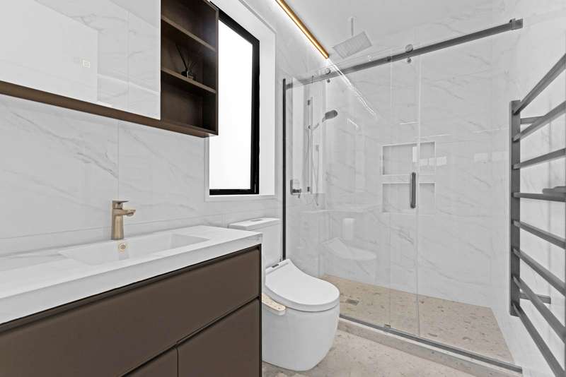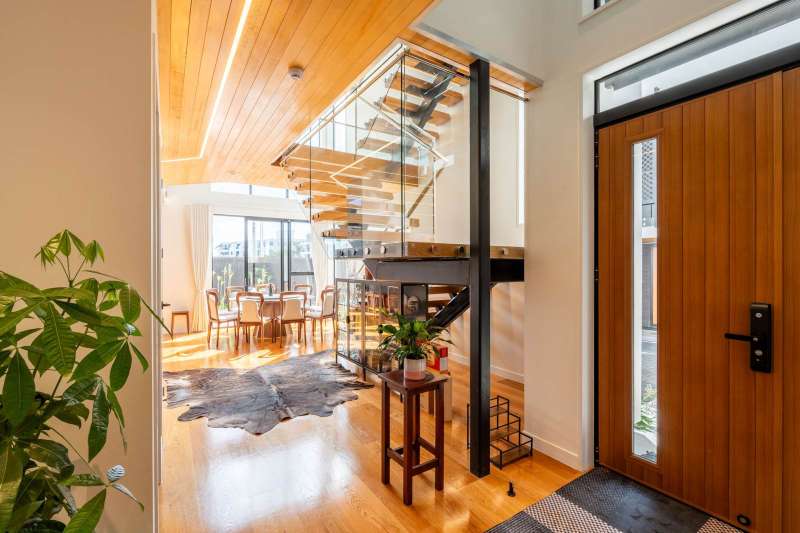 This premium architectural masterpiece in the heart of Takapuna showcases the perfect balance of design excellence and modern comfort, this modern home offers an exceptional lifestyle of sophistication, space, and convenience steps away from the beach. This beautifully crafted freestanding home features four ensuite bedrooms, including an extra-large master suite with dual wardrobes (conveniently one for her, one for him), two study rooms (great for WFM), two living areas, and two fully equipped kitchens — ideal for extended family living or hosting with ease. Feel grand with soaring 2.7m ceilings on both levels and an impressive 5.7m void above the entrance and dining area enhance the home’s light-filled elegance. Interiors feature quality solid American oak floating stairs, American oak timber flooring, extra-high internal doors, and cedar soffits and ceilings that exude timeless warmth and sophistication. Love cooking or hosting? The gourmet kitchen boasts high-end Gaggenau appliances, complemented by LED strip lighting throughout, a modern smart home system with security cameras, and eight air-conditioning and heat pump units, including four built-in systems for ultimate comfort. Low-maintenance cladding and decking, along with a double garage with storage cabinetry, make this the ideal lock-up-and-leave home. Unbeatable Location in the centre of bustling Takapuna: • In zone for Auckland's top schools - including Takapuna Primary, Takapuna Normal Intermediate, Westlake Girls' High School, and Takapuna Grammar School. • Beachside Lifestyle - just a few steps to the famous and family friendly Takapuna Beach. • Vibrant Community - a peaceful yet lively neighbourhood with fantastic local amenities including the Takapuna Sunday markets, bars, well-known restaurants and cafes. Don’t miss your opportunity to secure a premium residence in one of Auckland’s most desirable coastal suburbs - ready to call this home? Contact the listing agents now for more information or to view.