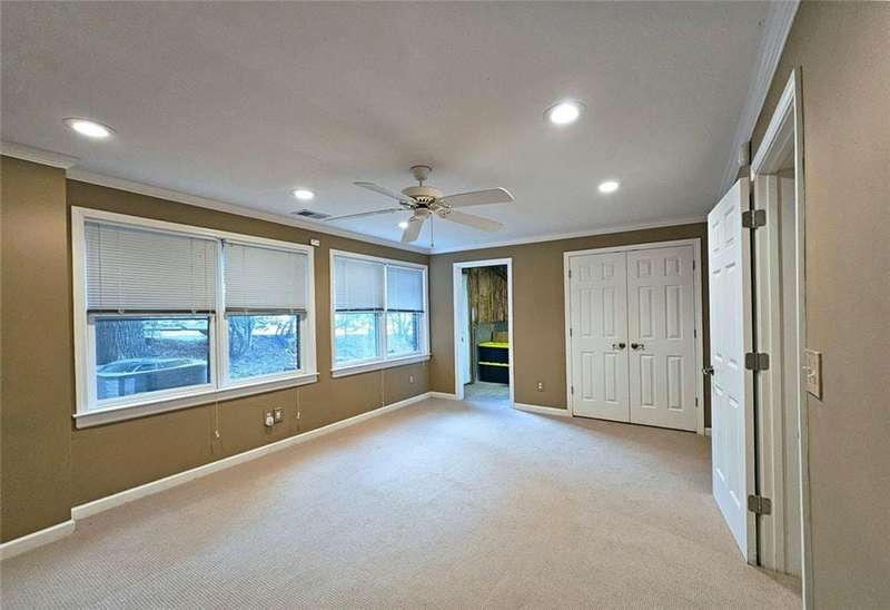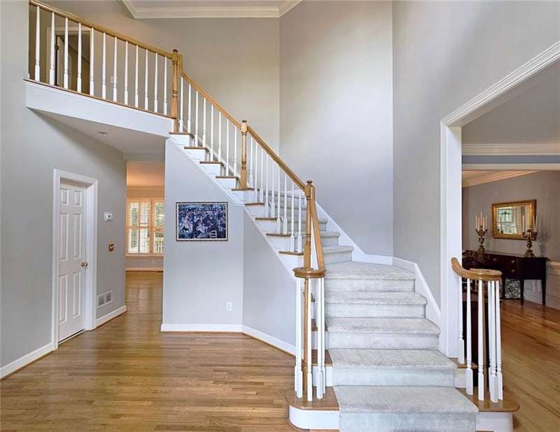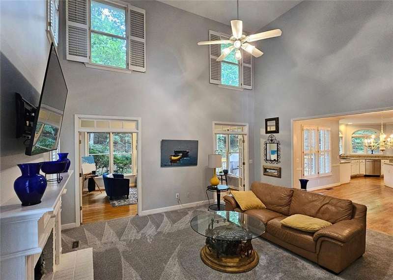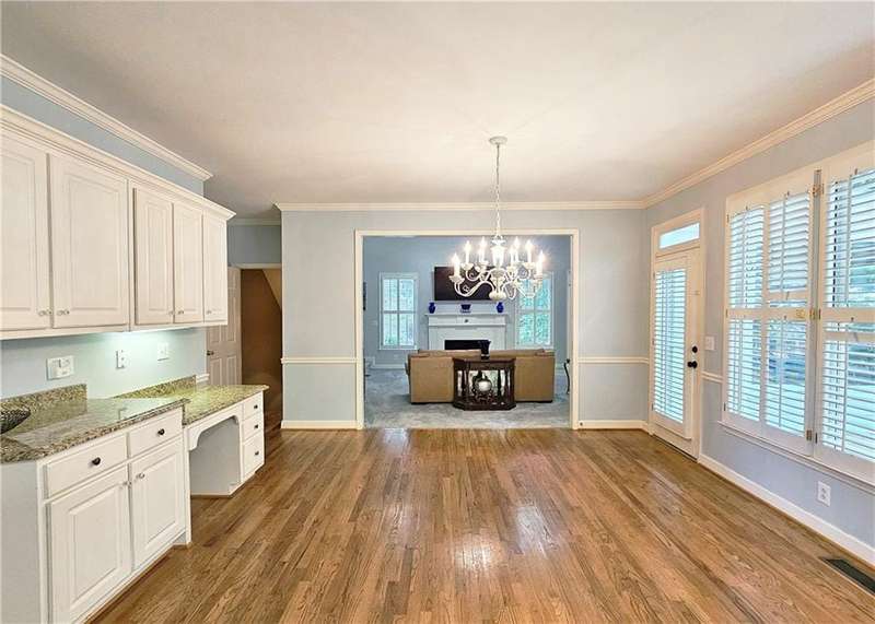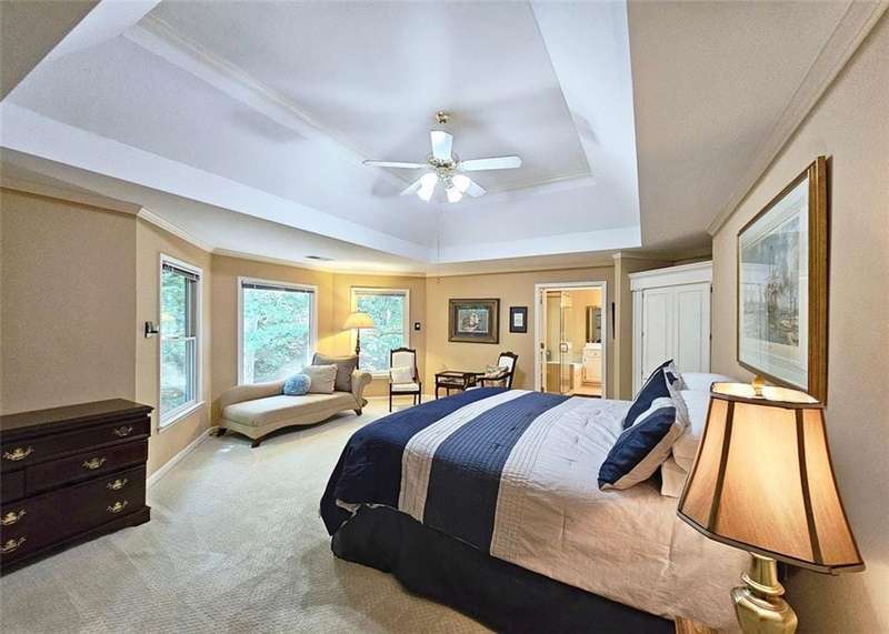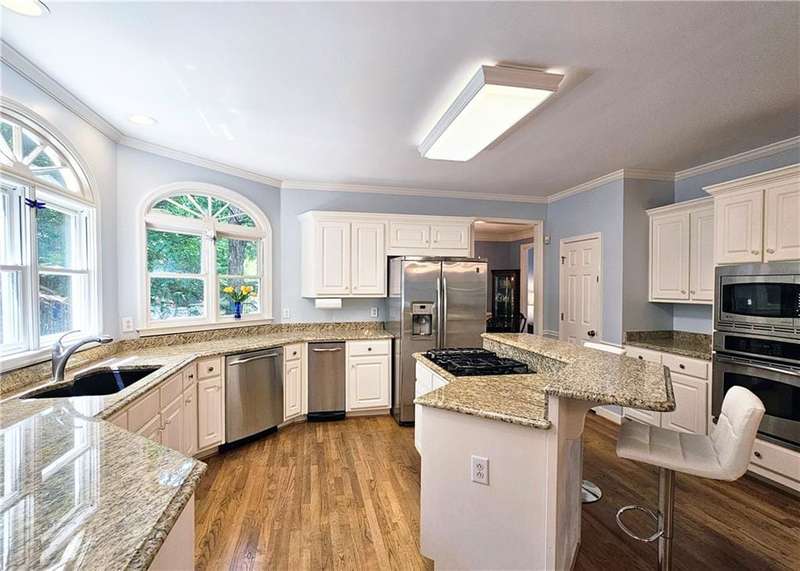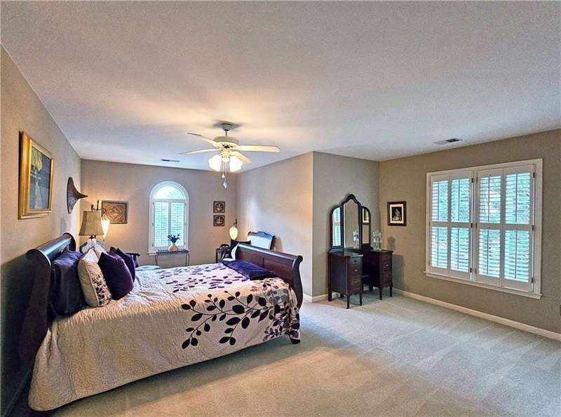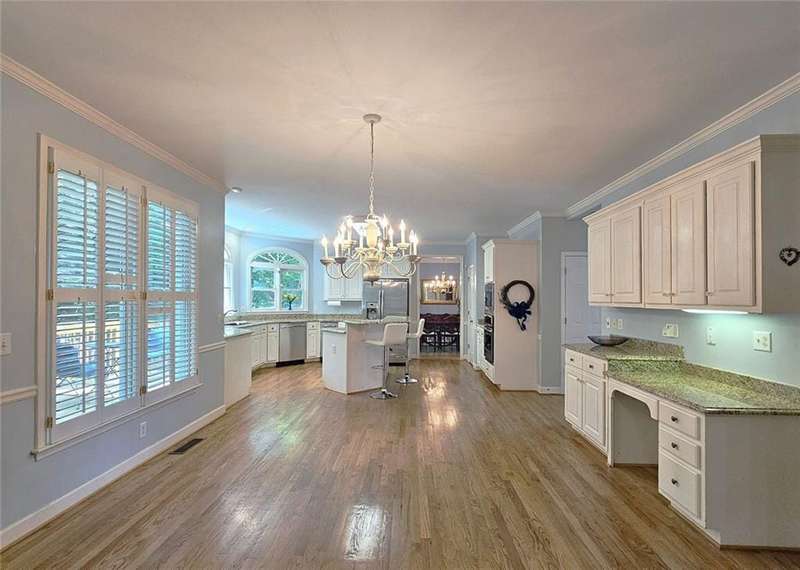 Beautiful brick traditional located in close walking distance to Park Glenn's Swim/Tennis facility and is a short distance from award winning, North Fulton County schools. Avalon, Downtown Alpharetta, Halcyon and the Greenway within easy reach. Home has a welcoming entry with hardwood floors, two story foyer leading to living room and separate dining room. First floor bedroom/office with French doors, palladium windows and adjoining full bath. The two-story charming family has French doors leading to a wonderful sunroom with lots of light coming through. The kitchen is light and bright, making it a pleasure to cook meals. Gas cooking, stainless steel appliances, stone counters, breakfast bar, pantry. Rear stairs lead to the very spacious primary suite with plantation shutters, a sitting area, trey ceiling, two separate bathroom vanities, storage or TV cabinet. Two other bedrooms with jack and jill bath. Upstairs laundry room with utility sink. Finished lower level with large entertainment room, bedroom, full bath and shower, exercise room and unfinished storage/equipment rm. Wonderful outside space, great for entertaining.