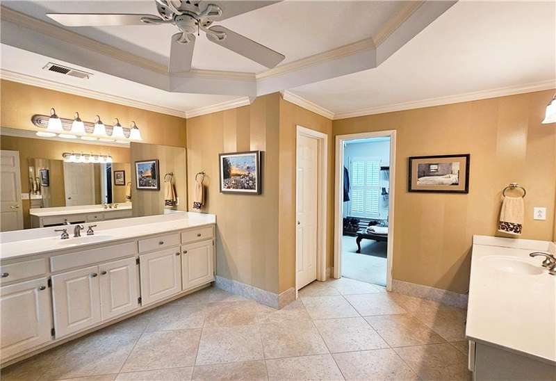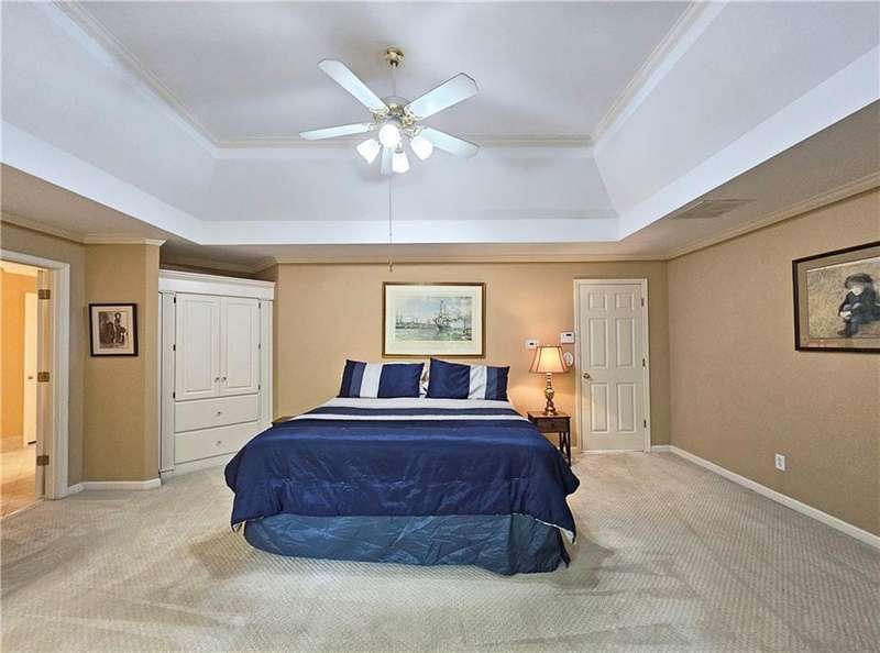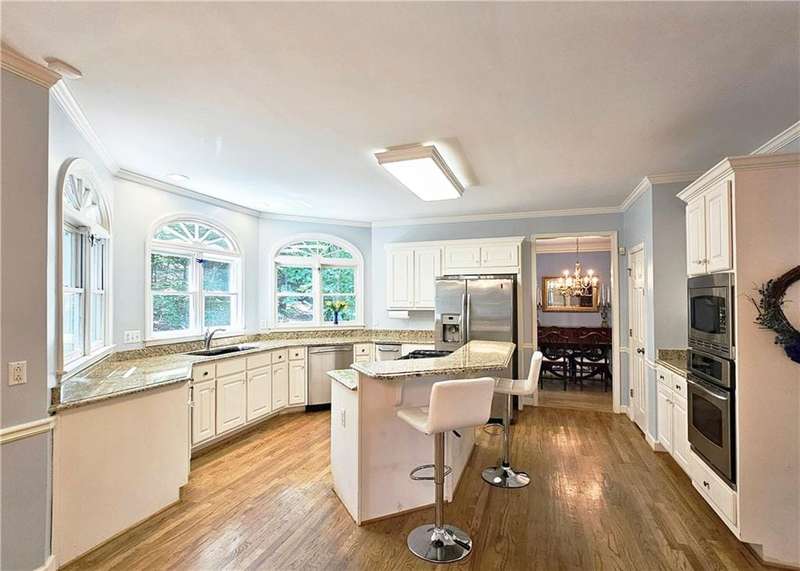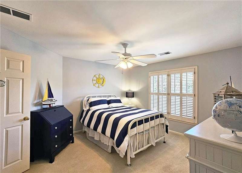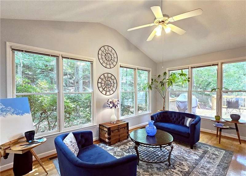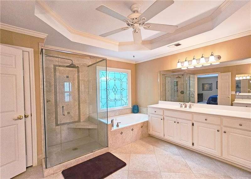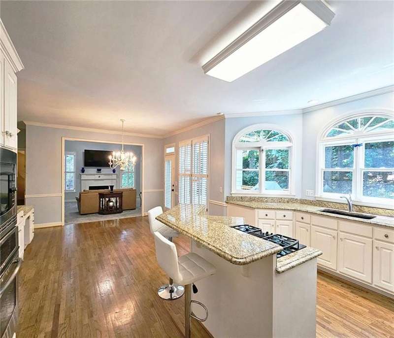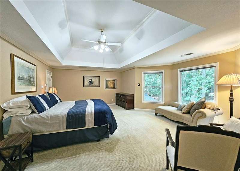 Beautiful brick traditional located in close walking distance to Park Glenn's Swim/Tennis facility and is a short distance from award winning, North Fulton County schools. Avalon, Downtown Alpharetta, Halcyon and the Greenway within easy reach. Home has a welcoming entry with hardwood floors, two story foyer leading to living room and separate dining room. First floor bedroom/office with French doors, palladium windows and adjoining full bath. The two-story charming family has French doors leading to a wonderful sunroom with lots of light coming through. The kitchen is light and bright, making it a pleasure to cook meals. Gas cooking, stainless steel appliances, stone counters, breakfast bar, pantry. Rear stairs lead to the very spacious primary suite with plantation shutters, a sitting area, trey ceiling, two separate bathroom vanities, storage or TV cabinet. Two other bedrooms with jack and jill bath. Upstairs laundry room with utility sink. Finished lower level with large entertainment room, bedroom, full bath and shower, exercise room and unfinished storage/equipment rm. Wonderful outside space, great for entertaining.