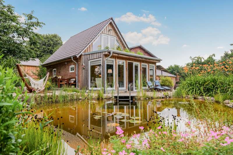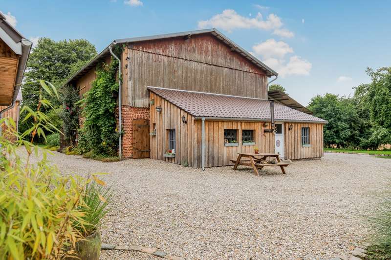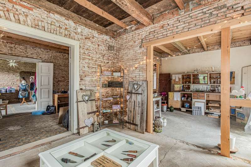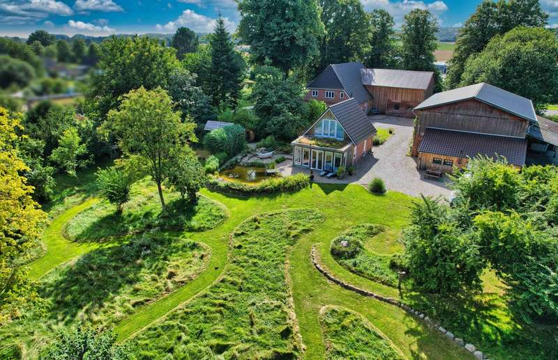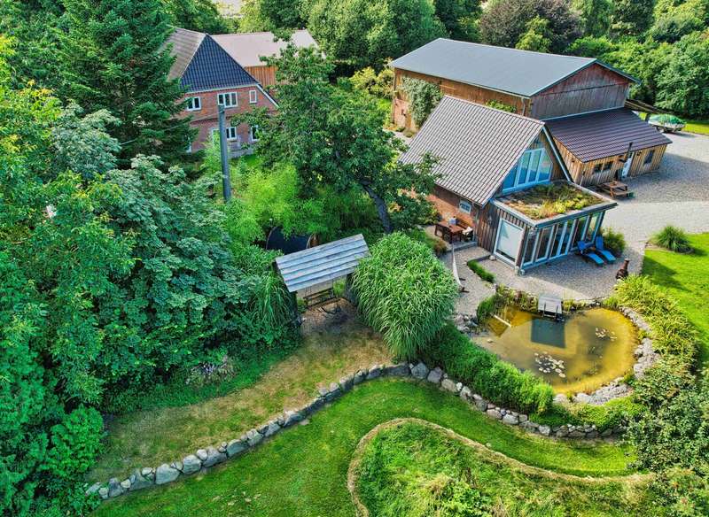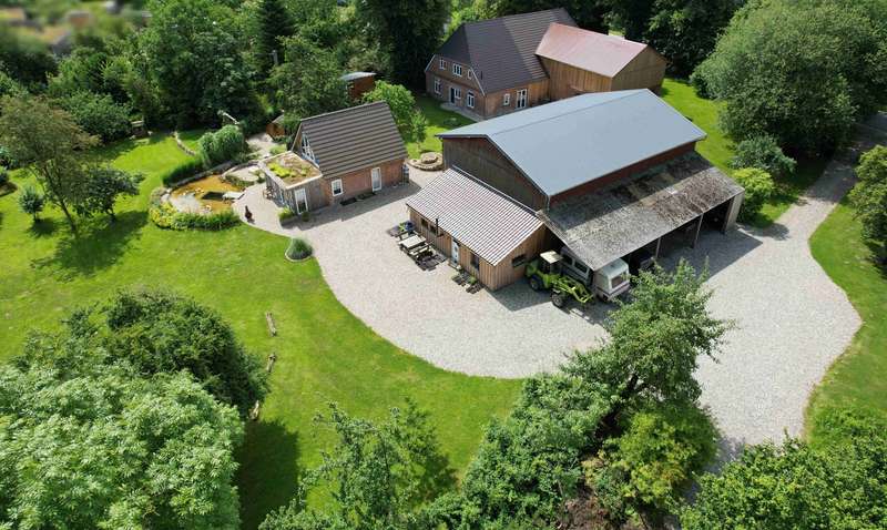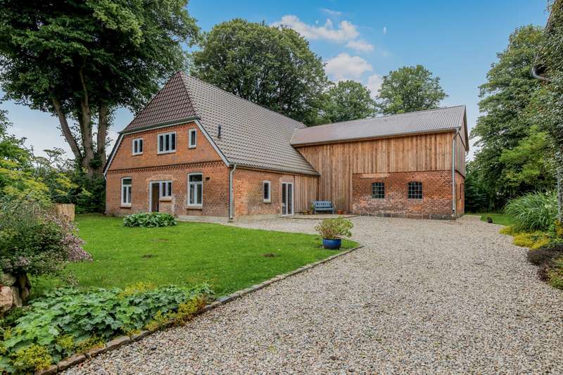 Welcome to the three-sided farm Petersburg - a place that touches. This property is not a house. It is a concept of life. The historic farm was built in 1873 and has since been lovingly and ecologically restored. In addition to the house currently occupied by the owners, the impressive manor house offers every opportunity to realize your own living dreams and make them come true. The manor house has already been completely gutted and has new roofing and windows. In addition, the stately home has been equipped with a new gas connection and heating system. In total, the approx. 580 m² of living and usable space offer exceptional and diverse options to realize stylish country living and a very special lifestyle. Situated in a natural setting in the Eckernförde countryside, the approximately 25,000 m² plot opens up to sweeping views over green meadows. You can feel and experience both inside and out: Bright rooms in a modern country house style, natural materials, relaxed atmosphere - it feels like coming home to good friends. Historic charm meets contemporary comfort, stylish and authentic. Sustainability was not a trend, but a conviction when renovating the bakery: Clay plaster, ecological materials and fine details tell of respect for history - and of looking to the future. Whether as a stylish home or a creative retreat - naturalness, serenity and perspective are combined here in a very special way. The current owners have modernized & designed with a lot of love. This property is a special offer due to its location and excellent facilities. Realize your dream of living in the country, perhaps with friends, perhaps with guests, or perhaps you have your own ideas. We would be happy to present this beautiful property to you as part of a viewing / inspection. Manor house: Ground floor approx. 175 m² upper floor approx. 130 m² total: approx. 305 m² 2019: Property was completely gutted, new windows installed, new connection to the gas network plus new heating system 2020: Masonry completely renovated 2023: new roof covering (clay tiles) Adjacent cowshed: Ground floor approx. 90 m² Upper floor approx. 90 m² total: approx. 180 m² 2020: Masonry completely renovated 2023: new roof covering (trapezoidal roof) Manor house & former cowshed, form / can form a unit (fully developed)! Options: - can be expanded according to your own wishes - up to 4 residential units possible Barn: Ground floor approx. 170 m² Upper floor approx. 170 m² total: approx. 340 m² 2019: Property was completely gutted, new windows installed, new connection to the gas network plus new heating system 2020: Masonry completely renovated 2023: new roof covering (clay tiles) Workshop: Ground floor approx. 38 m² 2023: new roof covering (clay tiles), insulated, new power lines, radiators installed / wood-burning stove present (not connected) Barn & workshop, form one unit Options: - Upper floor: up to 2 residential units possible - First floor: up to 6 horse boxes possible - Trailing roof on the building complex 5 m x 16 m, further horse boxes also possible here, currently large carport Bakehouse / current residential building: Ground floor approx. 52 m² upper floor approx. 26 m² total: approx. 78 m² 2020 - 2023: - Change of use from bakery to residential property - Property was completely gutted, new construction - Insulation made of reed mats & clay plaster, painted with clay paint (Lesando) - Oak wood parquet in the living room / conservatory (ground floor) & on the entire upper floor - Underfloor heating throughout the first floor - New windows with glazing bars (fitted) - New front door (carpentry work) - fitted kitchen with gas cooker - shower / bath tub - open and modern room layout - Panoramic view of the park grounds, paddock and forest - small terrace / green roof on conservatory, accessible from the upper floor Plot of land approx. 10,000 m² : 2022: New wellness oasis - new swimming pond with footbridge and stream plus new wooden barrel sauna - Completely hidden from view - Old fruit trees - Large campfire site - Greenhouse approx. 21 m² paddock approx. 15.000 m² : - currently grazed by 3 horses - Water source available