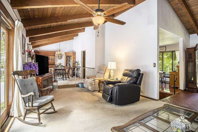 Explore this spacious ranch-style home featuring 3,234 sq ft of living space, complete with 6 bedrooms and 3.5 baths, nestled in a secluded setting with 334+/- ft on Mill Pond. This home boosts numerous recent updates, including: geothermal HVAC, remodeled kitchen with newer countertops, tiles, flooring, a modern cooktop, sink & dishwasher. A new septic system is being installed. The exterior has recently been painted & a new roof installed. A newer garage door opener for convenience, three newer Anderson doors to enhance natural light. A security system to give peace of mind. Enjoy summertime relaxation with an inground pool, accessible through the walkout basement or the newer deck overlooking the entire back yard & Mill Pond.