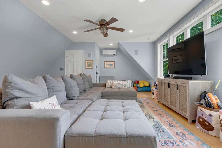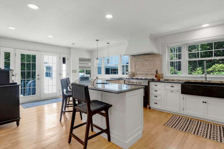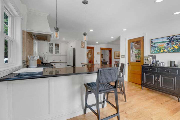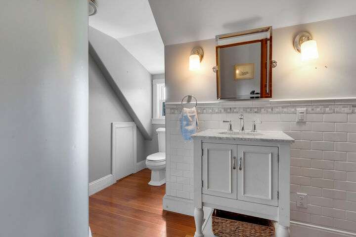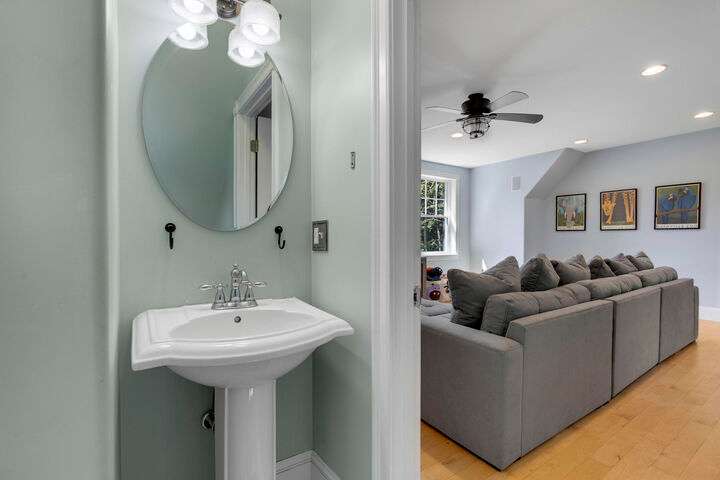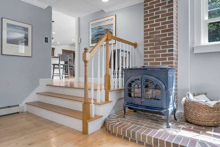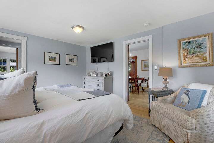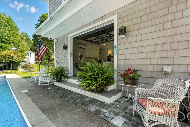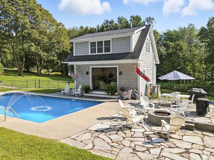 Set on nearly two acres along scenic Foreside Road, this timeless New Englander offers a combination of historic charm, modern updates, and an ideal location directly across from Broad Cove Reserve—a 23-acre public treasure with a sandy beach, pier, and walking trails. Inside, a gracious foyer with a stunning staircase and original moldings sets the tone, while formal and informal living spaces invite gathering. The formal living room features a gas fireplace while the family room offers a cozy heat stove. The versatile bonus room with attached half bath offers flexibility for work, play or easy conversion to a primary ensuite. The updated kitchen includes a walk-in pantry and opens to a tiered deck with hot tub, leading to the private backyard and pool area. The home's layout provides bedrooms and a full bath on each of its three levels, creating options for guests, home offices, or multi-generational living. The pool house, a legal 864 sf one-bedroom, one- and a half-bath accessory dwelling unit, can serve as guest accommodations, an entertaining space, or an income-producing rental. Significant updates include a whole-house automatic generator, heat pumps, solar array, irrigation system, and more. Living in Cumberland means enjoying one of Maine's most desirable communities, where top-ranked schools, scenic coastline, and a strong sense of community come together. From Broad Cove Reserve just across the street to nearby golf, marinas, and trails, outdoor recreation is always within reach—while Portland's vibrant dining, arts, and cultural scene is just minutes away.