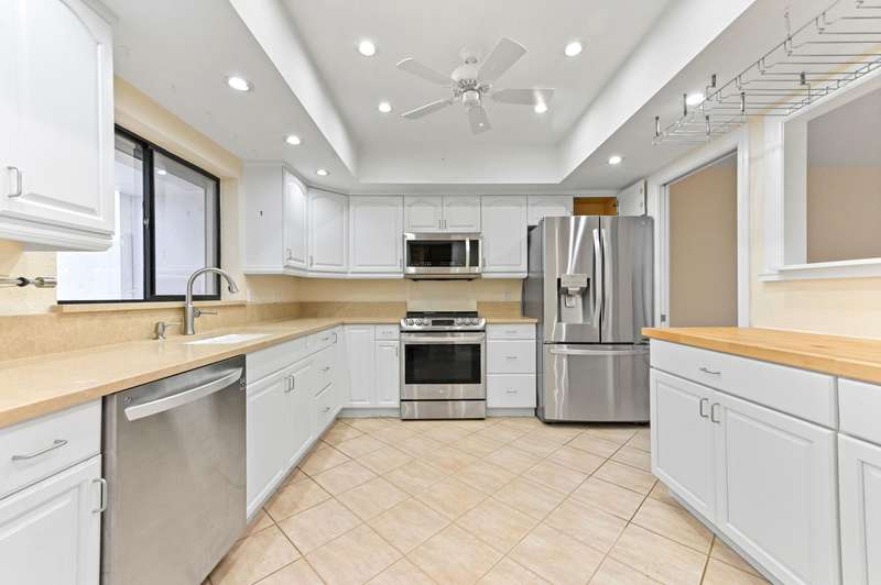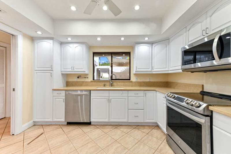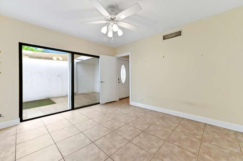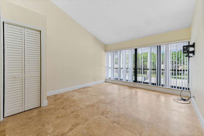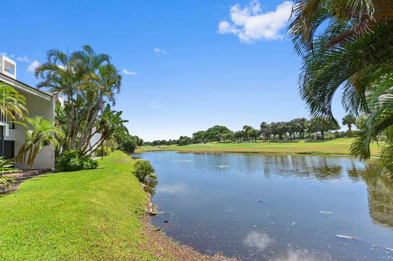 Welcome to townhouse 1-F in the Lands of the President known as the best kept secret in Florida for its prime location in the heart of bustling WPB, 3.5 miles to beaches & PB Island, close to PBI airport & Tanger Outlet Mall with Whole Foods, Marshall's, Saks of Fifth, + across the str. This 3 BR, 3 Bath townhouse is an end unit & the largest lot in the community. The entry to your home is a serene private courtyard and you walk into a 10 FT plus loft LR. Make dinner in the updated open kitchen w/ newer stainless steel appliances and enjoy it on your private patio or wake up & have coffee/tea on your screened terrace overlooking the Dutchman's Pipe golf course. Coming in at 1862 SF this unit has a spacious layout with a ton of light. The 2car carport gives easy access to unload groceries