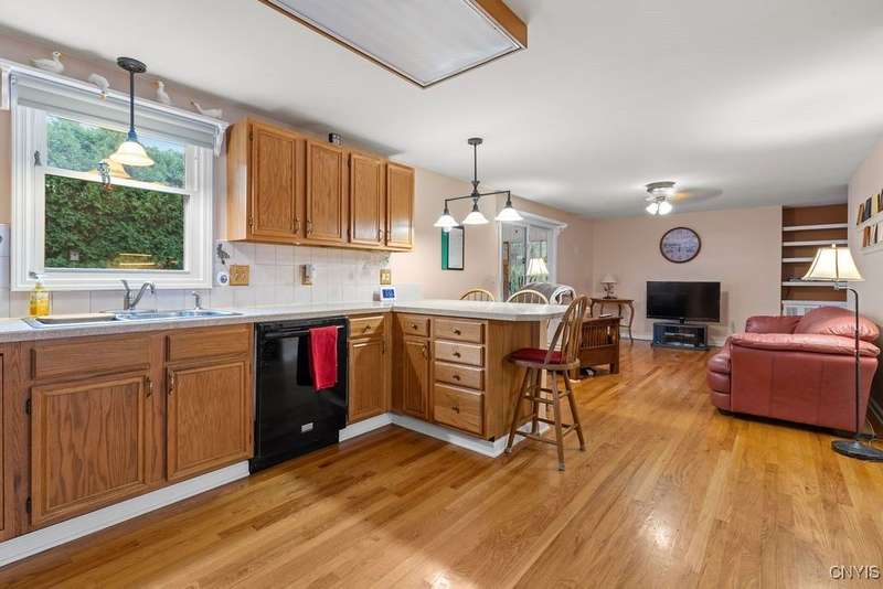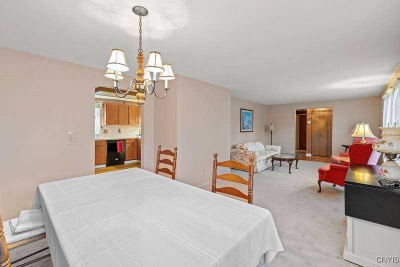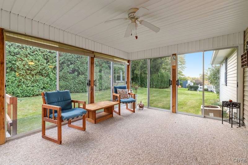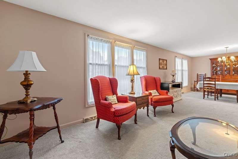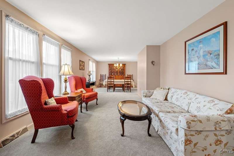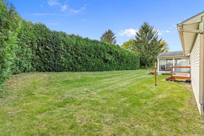 SHOWINGS BEGIN ON SATURDAY, 10/25/2025, AT 9AM Welcome to this inviting 2-bedroom, 2-full-bath ranch home, ideally located in the highly regarded West Genesee School District. Tucked away on a quiet cul-de-sac, this property offers a peaceful setting while remaining convenient to shopping, restaurants, and everyday amenities.Inside, you'll find a thoughtfully designed floor plan featuring hardwood floors, first-floor laundry, and generous living spaces. The formal dining room and spacious living room provide elegant areas for entertaining, while the family room offers a comfortable space for relaxing with loved ones.The kitchen, complete with a breakfast bar, opens seamlessly to the family room?creating a warm, connected atmosphere. From there, step into the sunroom, where large windows overlook a private backyard, perfect for enjoying morning coffee or quiet evenings outdoors.Both bedrooms are generously sized, offering plenty of space and natural light. Every detail of this home has been designed with comfort and convenience in mind, making it ideal for those seeking single-level living in a desirable neighborhood.Don't miss the opportunity to call this charming ranch home your own?schedule a private showing today!