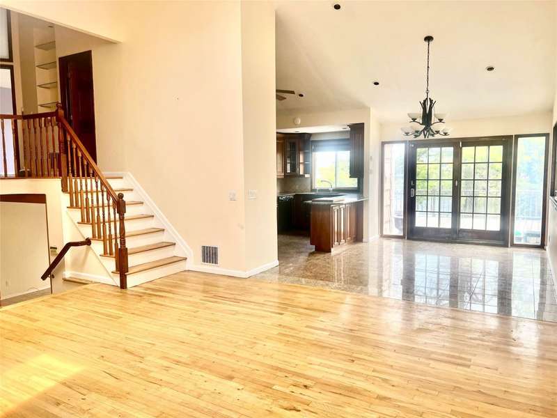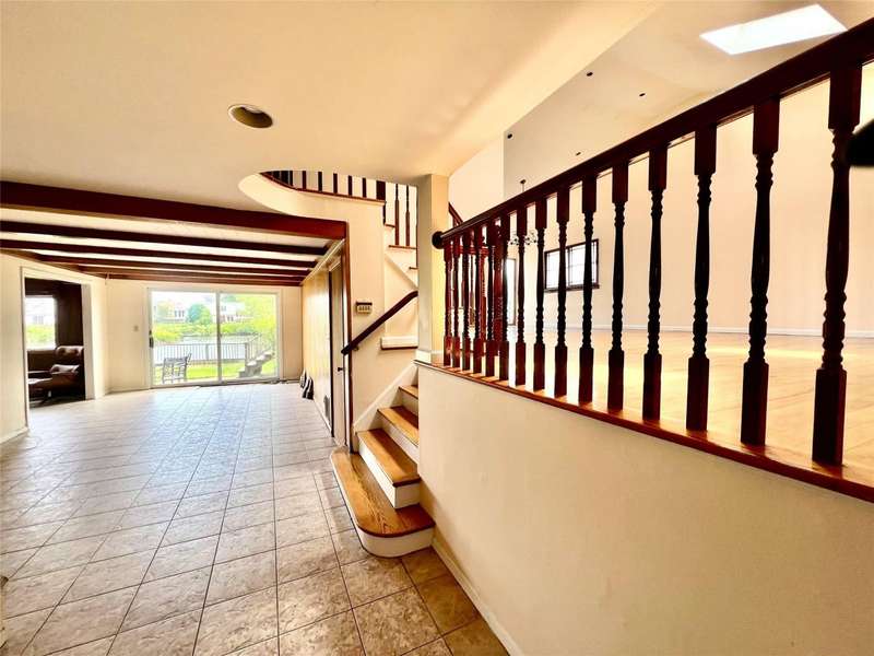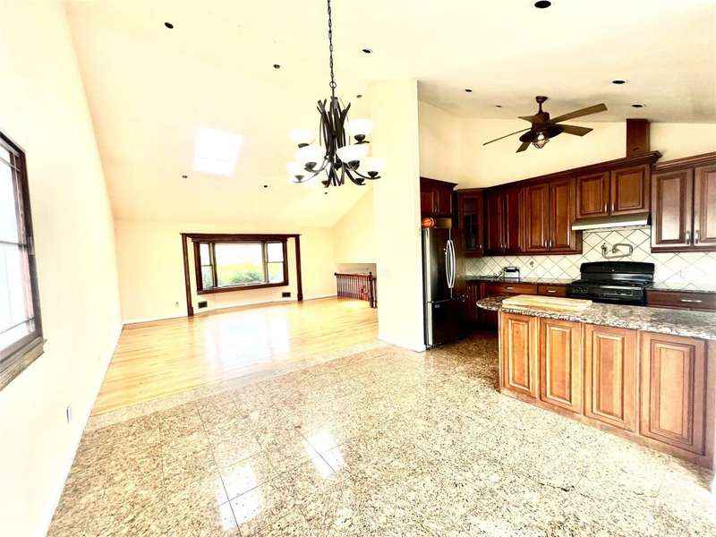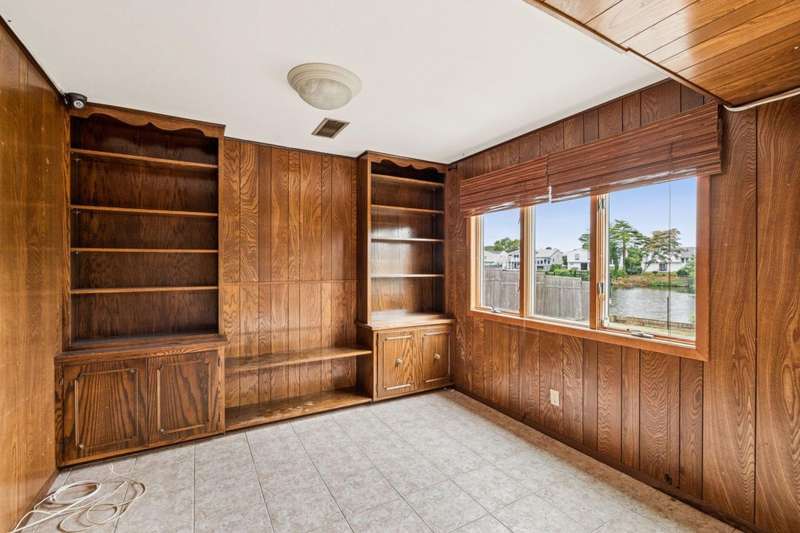Welcome to this spacious and unique split-level home, perfectly situated on a picturesque waterfront lot (70x100) offering serene lake views and tranquil living. With 4-5 bedrooms and 3 full baths, this home is ideal for those seeking space, comfort, and beauty both inside and out. The main level features a welcoming foyer, den, bedroom, full bath, and a private study-ideal for guests or a home office. Upstairs, enjoy an open layout with vaulted ceilings throughout the living room, dining room, and a granite and wood eat-in kitchen designed for both daily living and entertaining.The top floor boasts three generously sized bedrooms and two full baths, including a luxurious marble-clad primary suite. A fully finished basement adds versatile living space, perfect for a playroom, gym, or media room.This home is equipped with gas hot air heating and central air, both on one zone, along with a separate gas hot water heater. A scuttle attic offers convenient storage, while the private deck provides a peaceful setting to relax and take in stunning lakefront views. Don't miss this rare opportunity to own a lakeside retreat that truly has it all-comfort, elegance, and an unbeatable setting.