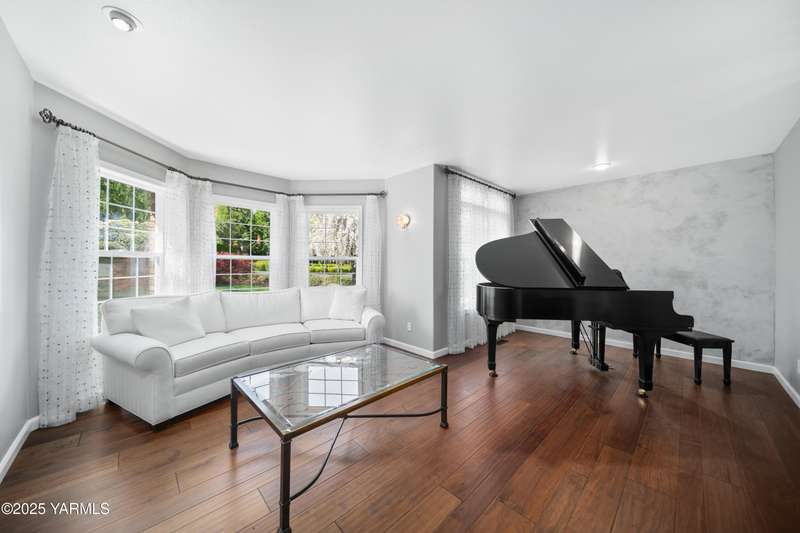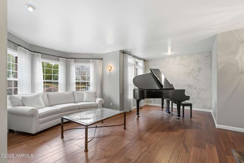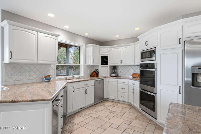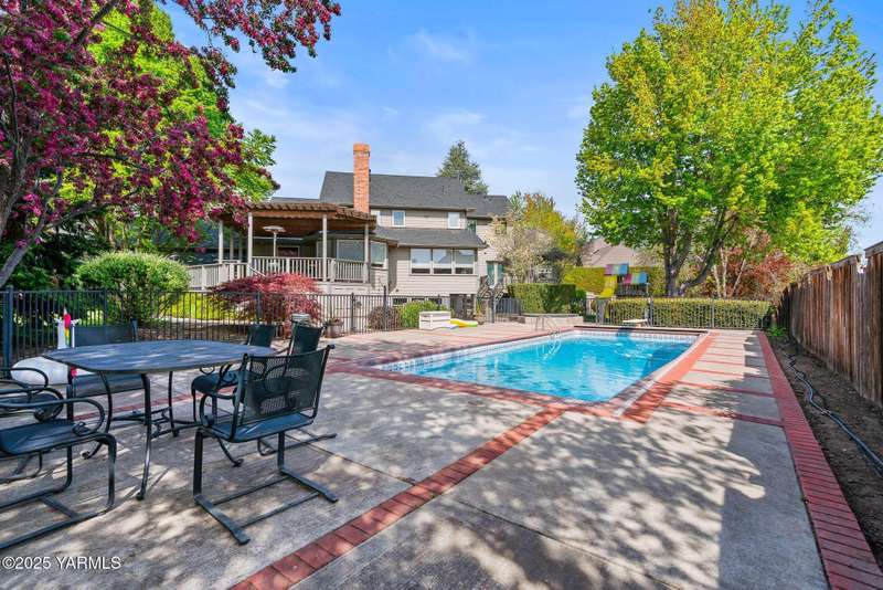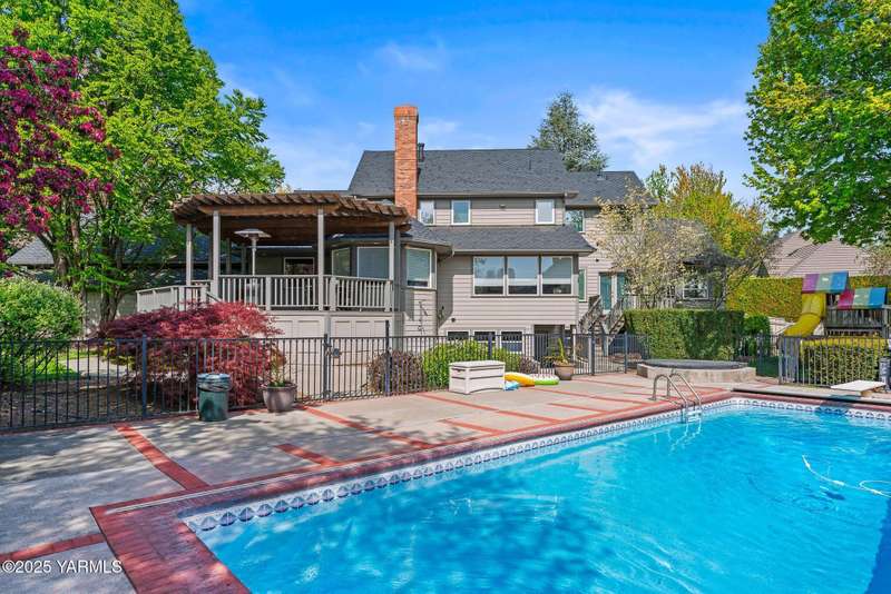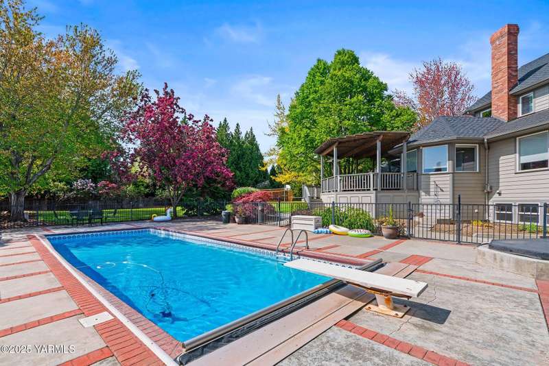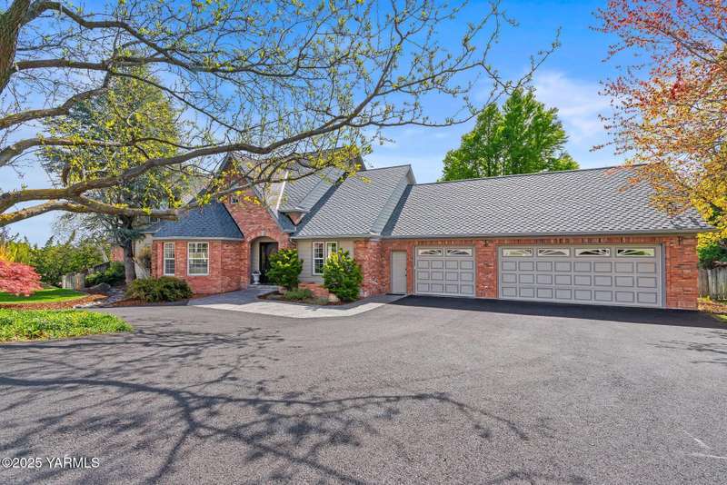 Once in lifetime chance to own a Kline Built Yakima Valley estate for under $250 per square foot. 75 % LESS than replacement cost! The price also includes 3/4 acre lot in gated community with beautiful mature landscaping, pool, spa, pickleball court, new flooring, paint, appliances, roof and driveway and $75K master bath remodel! Perched atop Scenic Drive, this expansive, nearly 8000 square feet, home is a true masterpiece that commands attention from the moment you arrive. Its prime location at the end of a tranquil cul-de-sac, surrounded by only a few custom homes, ensures both privacy and exclusivity. As you approach this remarkable property, the grand circular drive creates a striking first impression, leading you to an entrance that exudes elegance and sophistication. Step inside, and you are immediately captivated by the soaring ceilings and the large front room, which features a grand piano and a cozy gas fireplace--ideal for intimate gatherings or entertaining guests. To the right, the spacious formal dining room accommodates 12 or more, complete with a built-in buffet, making it the perfect setting for memorable dinners and celebrations. The heart of the home is the gourmet kitchen, designed with ample working space for all the chefs in the family. Highlights include double ovens, a gas cooktop, and abundant storage for every kitchen appliance needed to create culinary masterpieces. Casual dining is a delight here, with scenic views of the covered back patio and the inviting pool.The large living room, wrapped in windows, invites an abundance of natural light, creating a warm and welcoming atmosphere for relaxation and entertainment. The main floor also features a primary suite that is truly a retreat. Recently remodeled, the ensuite bathroom is right out of Architectural Digest, showcasing stunning finishes and a spa-like ambiance.