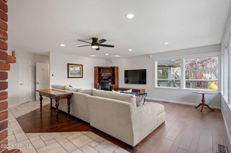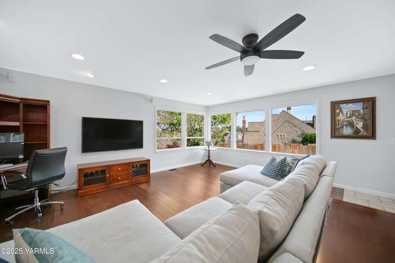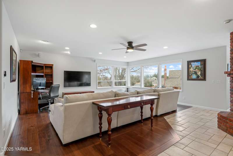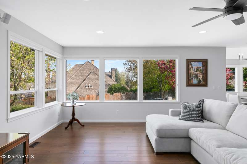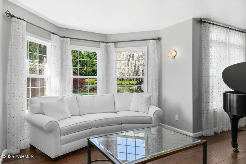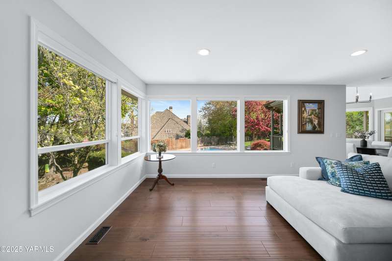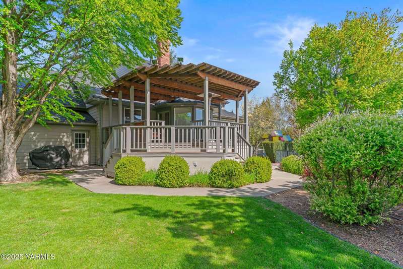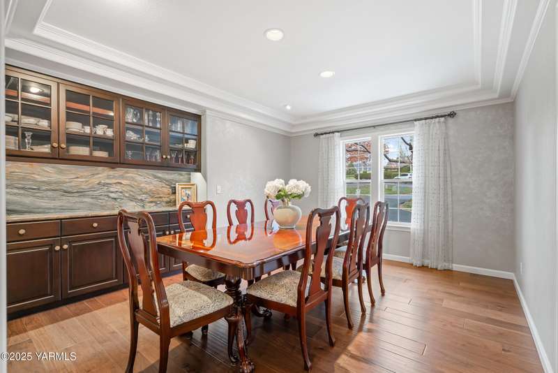 Once in lifetime chance to own a Kline Built Yakima Valley estate for under $250 per square foot. 75 % LESS than replacement cost! The price also includes 3/4 acre lot in gated community with beautiful mature landscaping, pool, spa, pickleball court, new flooring, paint, appliances, roof and driveway and $75K master bath remodel! Perched atop Scenic Drive, this expansive, nearly 8000 square feet, home is a true masterpiece that commands attention from the moment you arrive. Its prime location at the end of a tranquil cul-de-sac, surrounded by only a few custom homes, ensures both privacy and exclusivity. As you approach this remarkable property, the grand circular drive creates a striking first impression, leading you to an entrance that exudes elegance and sophistication. Step inside, and you are immediately captivated by the soaring ceilings and the large front room, which features a grand piano and a cozy gas fireplace--ideal for intimate gatherings or entertaining guests. To the right, the spacious formal dining room accommodates 12 or more, complete with a built-in buffet, making it the perfect setting for memorable dinners and celebrations. The heart of the home is the gourmet kitchen, designed with ample working space for all the chefs in the family. Highlights include double ovens, a gas cooktop, and abundant storage for every kitchen appliance needed to create culinary masterpieces. Casual dining is a delight here, with scenic views of the covered back patio and the inviting pool.The large living room, wrapped in windows, invites an abundance of natural light, creating a warm and welcoming atmosphere for relaxation and entertainment. The main floor also features a primary suite that is truly a retreat. Recently remodeled, the ensuite bathroom is right out of Architectural Digest, showcasing stunning finishes and a spa-like ambiance.