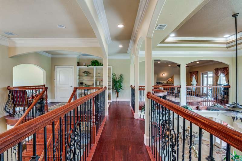 $160K BELOW Appraised Value + Concessions Available! Stunning custom-built, original-owner home in prestigious Lake Ridge! Perched on a 1.01-acre hilltop lot with panoramic views, this estate blends elegance and functionality. Featured in HAVEN Magazine and American Dream TV, it offers 4 spacious bedrooms, 2 upstairs, 2 downstairs, a dedicated office with built in desk and bookshelves, a gourmet kitchen with granite counters, prep sink & double ovens. The stunning primary suite and generous ensuite with double-sided fireplace with separate sitting room overlooks the expansive back yard. Two bedrooms, each with ensuite, new luxury vinyl floors, fabulous game area, dual homework station and a fully furnished media room are upstairs. Two large enclosed porches and an elevator make entertaining effortless. Fully fenced yard with motorized gate has room for a pool or garden. Located on a quiet cul-de-sac near Joe Pool Lake, Tangle Ridge Golf Club, and shopping. This property combines timeless luxury, abundant space, and unbeatable value in this Lake Ridge gem.