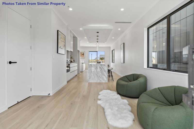 Discover the perfect blend of contemporary design and everyday functionality in this brand-new standalone residence, proudly crafted by Onward Homes, a renowned Auckland-based developer known for quality and precision. With the added security of a Master Build 10-Year Guarantee, this home promises durability, sophistication, and long-term peace of mind. Positioned on a prime site, this architecturally designed four-bedroom home captivates with its bold exterior, featuring a striking combination of timber and metal cladding. Step inside to experience thoughtfully designed interiors, where expansive living areas are bathed in natural light through floor-to-ceiling windows, seamlessly connecting to beautifully landscaped outdoor spaces. Key Features: • Spacious Open-Plan Living – A bright and inviting space that effortlessly flows from the kitchen to the outdoor entertainment areas. • Designer Kitchen – A statement of luxury, boasting a sleek central island, premium SMEG appliances, and hidden LED lighting beneath a stylish suspended ceiling. • Elegant Feature Wall – A built-in floating TV cabinet with integrated storage and display shelving, blending functionality with contemporary aesthetics. • Seamless Indoor-Outdoor Flow – Large sliding doors open onto a sun-filled entertainment deck, perfect for alfresco dining and relaxation. • Four Generous Bedrooms, 2.5 Bathrooms – The master retreat offers a walk-through wardrobe and a luxurious ensuite with a freestanding bathtub, double vanity, and underfloor heating. Three additional bedrooms share a chic family bathroom, while a separate guest powder room adds extra convenience downstairs. • High-End Finishes Throughout – Including central air-conditioning, an integrated background music system, and LED-lit mirrors for a touch of sophistication. • Secure Internal Access Garage – A spacious Tandem Garage/Single Garage with extra storage potential. Situated in a peaceful, newly developed community, this home provides the perfect balance of privacy and accessibility, with top schools, parks, and everyday amenities just moments away. A home of this calibre is a rare find – contact us today to arrange your private viewing!
