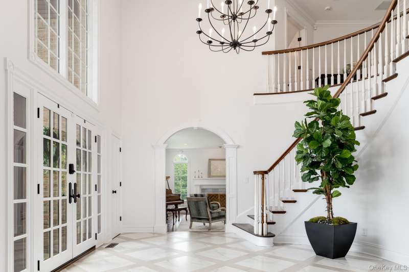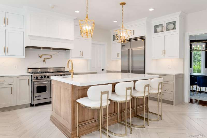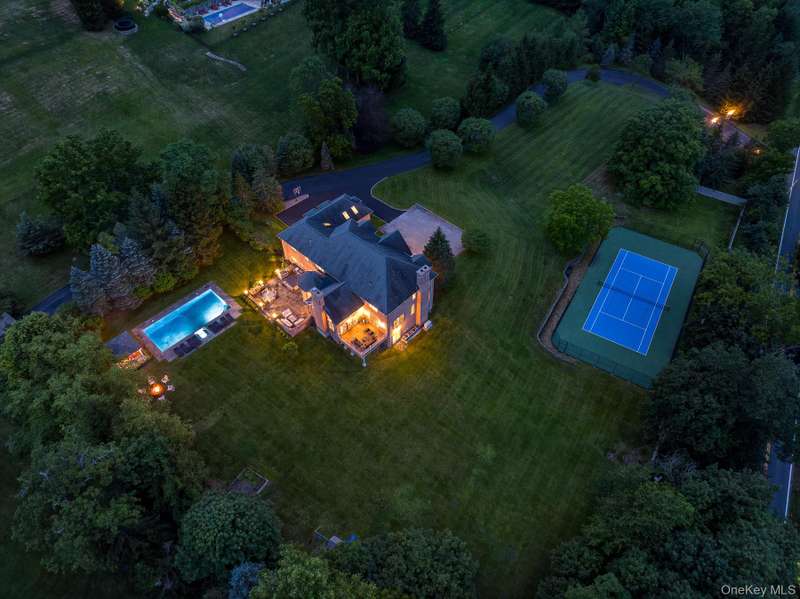 Nestled behind a gated entry on nearly three private acres in Armonk, this stately brick colonial offers a world of refined luxury and total seclusion. The property blends timeless architecture with modern sophistication and delivers resort-caliber living at every turn. Outdoors, the amenities rival any private club: a regulation tennis court with pickleball lines, sparkling in-ground pool with adjacent spa, and a fully outfitted outdoor kitchen and dining pavilion -perfect for alfresco entertaining all year round. A cozy firepit lounge sits under the canopy of mature trees, ensuring privacy and tranquility. Inside you are greeted by fully renovated interiors. Every detail has been thoughtfully curated from the sleek, contemporary finishes to the rich textures of custom woodwork and classic architectural accents. Soaring ceilings and oversized windows bathe the expansive living areas in natural light, highlighting exquisite finishes from gleaming hardwood floors and substantial mi