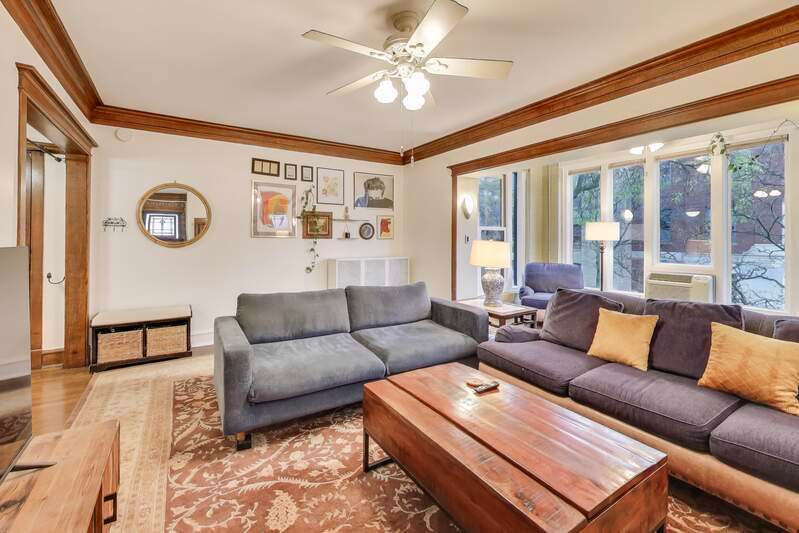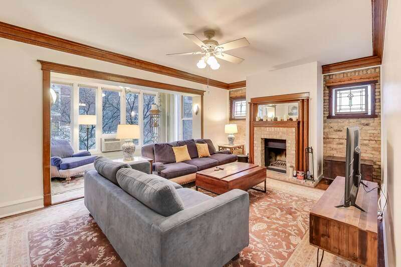 Available NOW! 2 BD/2 BA, middle floor condo, located in East Lakeview. This sun-filled home features: exposed brick, crown molding, and hardwood flooring throughout. Both bedrooms are generously sized. There is a west facing heated sunroom located off the living room. The living room has a wood burning fireplace & stained glass window inserts for a final touch of charm. Entertain in the formal dining room which has ample seating (room for more than 8 people), coffered ceilings, and picture molding. There are stainless steel appliances in the kitchen, in-unit washer & dryer (in the bathroom), and a shared back porch area. There are 2 wall units for air conditioning. The are steam radiators for heating. There is also a large storage locker located in the basement. This is a fantastic location near Starbucks, PetSmart, Chase Bank, Jewel-Osco, Fitness Formula Clubs, Whole Foods Market, Walgreens, and Wrigley Field - home of the Chicago Cubs! Easy access to Montrose Beach, the Lakefront Trail, Belmont Harbor, Waveland Softball Fields/Tennis Courts, and the Sydney R. Marovitz Golf Course. 0.6 miles from Sheridan Red Line Station. 0.6 miles from Addison Red Line Station. Landlord is collecting a 1-Month Security Deposit: $3,300. The Landlord requires a 650+ credit score. No history of evictions. No history of bankruptcies in the last 7 years. Pets allowed - Cats & Dogs OK. The Landlord is open to renting the apartment furnished. There is no parking on-site (only street parking or nearby rental parking). Available NOW!