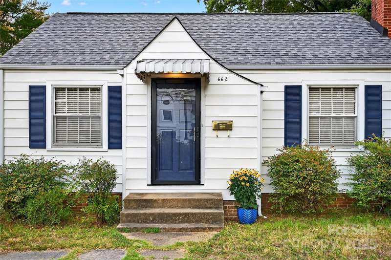 Charming 2 Bedroom, 1 Bath Home - Just steps from Downtown Mooresville! Discover the perfect blend of convenience & character in this cottage-style home, ideally situated within easy walking distance of Mooresville's vibrant downtown. This home boasts some beautiful architectural details such as hardwood floors throughout, plaster walls with picture-rail molding, an arched doorway, original glass & brass doorknob hardware on solid wood doors and a beautiful mantlepiece in the Living Room! This home would make a great starter home at just under 1,000 SF of living space. Or it may tickle the fancy of a savvy Investor looking to build their investment portfolio! Downtown Extension zoning allows for both multi-family and commercial uses with zero side setbacks!! Large, narrow, flat lot that has no restrictions. Don't miss this Opportunity to in Mooresville!