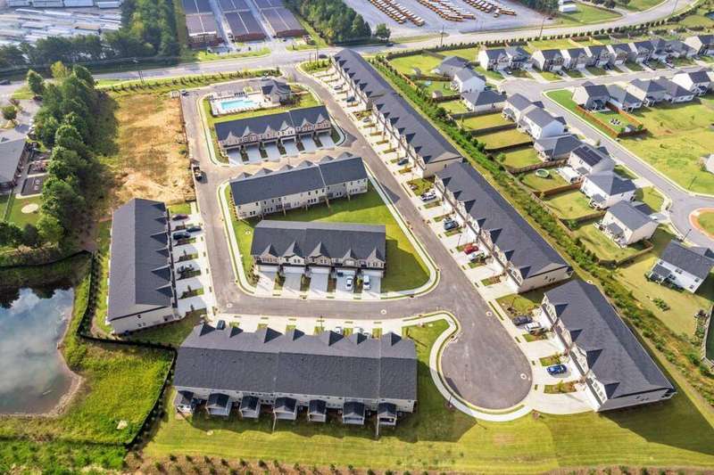 Lot 56 Weston End Unit- Ready early late fall- Welcome to the Weston Floor Plan-a beautifully designed townhome offering timeless style and modern comfort. This all-brick front home delivers energy-efficient all-electric living paired with thoughtful design throughout. Step inside from the charming covered front porch into a warm and welcoming foyer. The open-concept main level seamlessly connects the kitchen, dining, and family room, creating the perfect space for entertaining or everyday living. Enjoy smooth surface flooring, a ceiling fan in the family room, and access to a covered rear patio-ideal for relaxing, container gardening, or creating your own peaceful retreat. A convenient powder room and two-car garage complete the main level. Upstairs, you'll find three spacious bedrooms and two full baths, including the standout Weston primary suite. Enjoy a tray ceiling, ceiling fan, and an oversized walk-in closet that connects directly to the laundry room for added ease. The primary bath features a double vanity and a window for beautiful natural light each morning. Modern features, smart layout, and stylish details make the Weston a perfect place to call home. Don't miss your chance to tour this brand-new floor plan in one of Dacula's most exciting communities!
