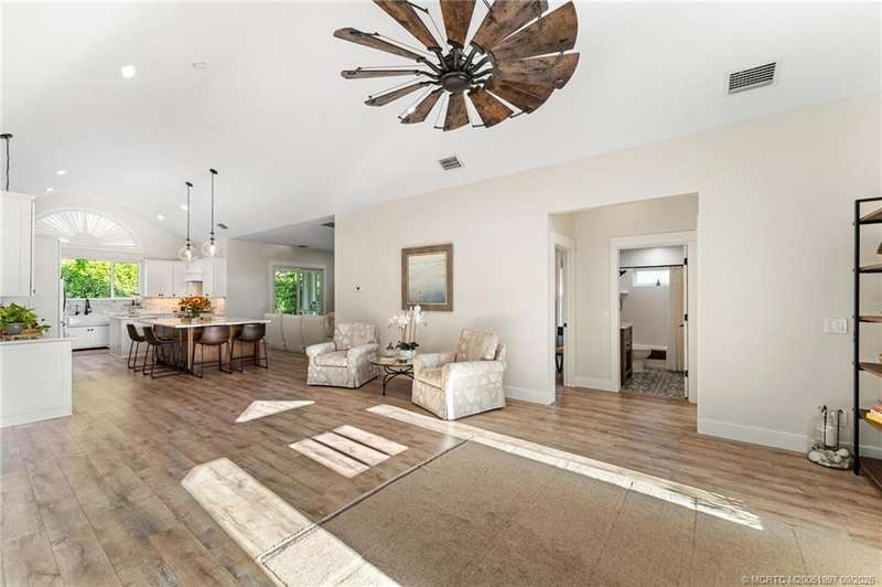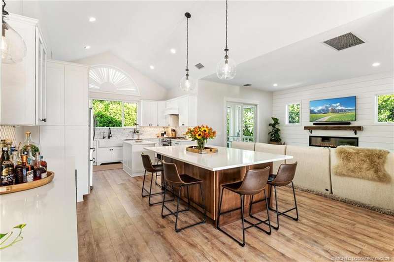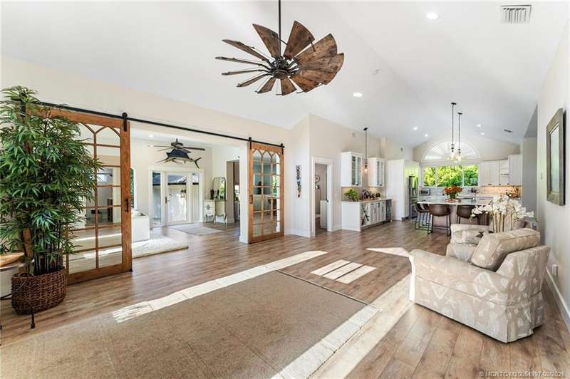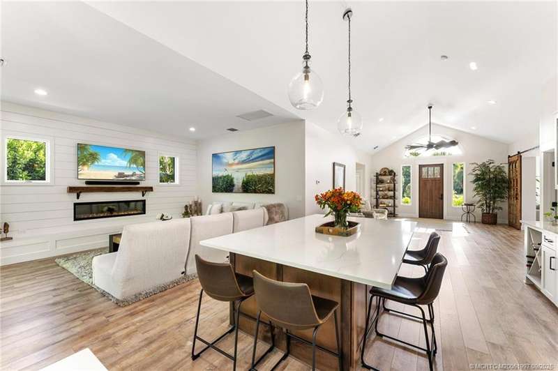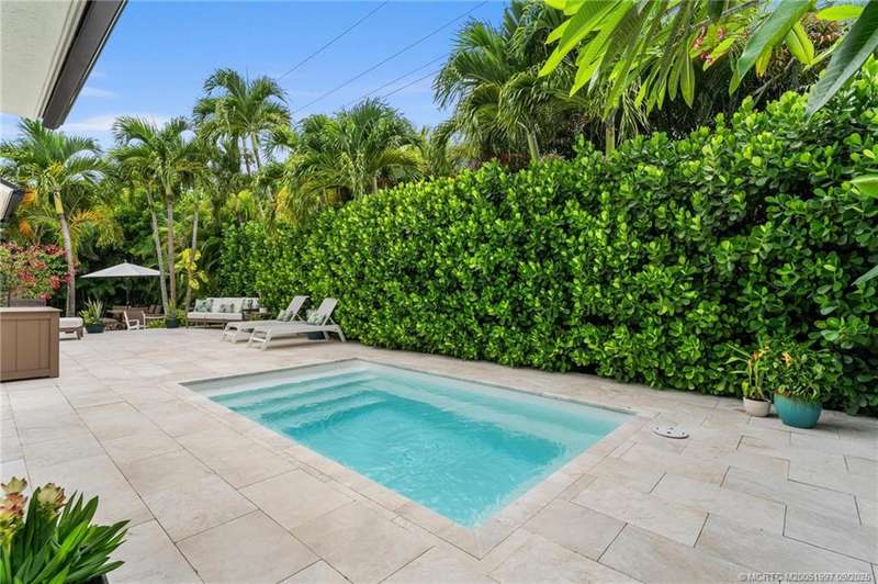 OPEN HOUS? 9/7 CA?CE?L?D!! Und?rg?ing a meticulous r?mod?l, this Downtown Stuart-area home exudes true Florida style with functionality. Pride of ownership is felt the moment you cross the front door and are greeted by the soaring ceilings. New PGT impact glass windows & doors, a reconfigured kitchen with large gathering island, & bar area beckon the true entertainer. Separate living room offers picture window views of the lush landscaping. Additional sitting area w/accent fireplace. Garage doubles as a split air-conditioned life/workspace with EV charging. Outside, the home shines day or night, with multiple seating areas, plunge pool, gas-fed firepit, & water feature. Upgrades include home back-up generator, tankless water heater, 2023 new seamless metal roof, 2020 AC dual home zones, owned solar panels, & SPAN smart home panel. Open cell spray foam insulation in house & garage. A bonus, 40-plus foot dock at the Outrigger Harbour Marina (Jensen Beach) & 24k lift offered for $325K.