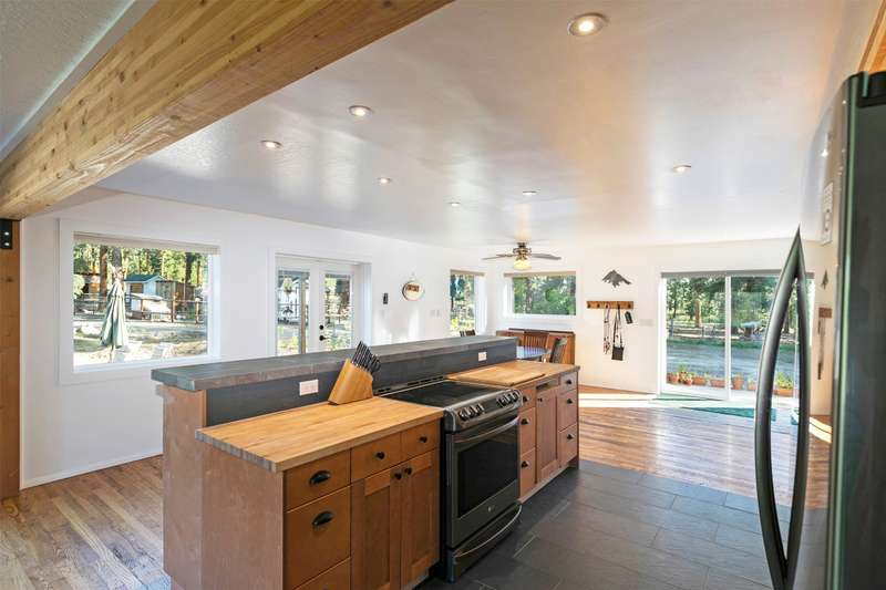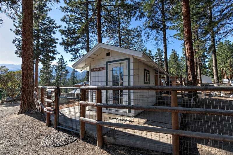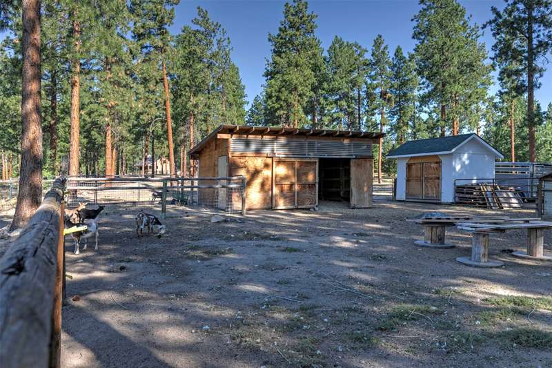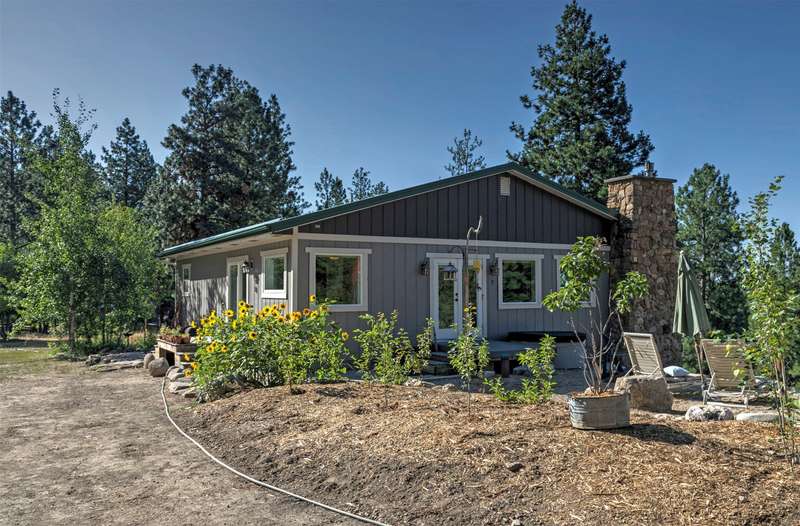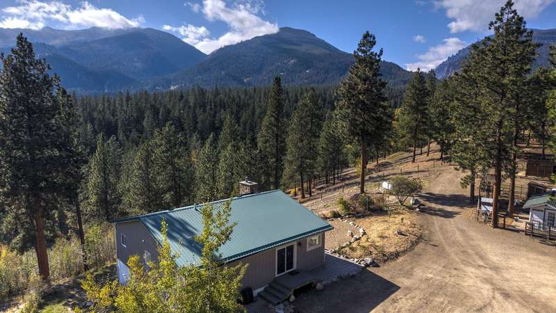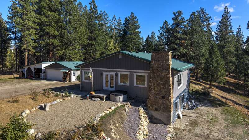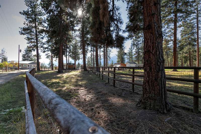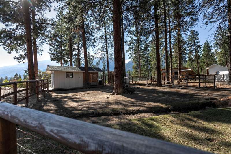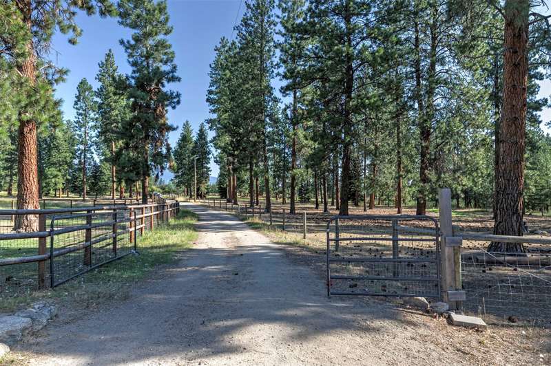 Tucked within tall pines, down a gated private drive, lies an idyllic hobby farm retreat at 821 Fred Burr Rd. The peaceful 20-plus acres are currently home to irrigated and cross-fenced pastures full of domestic goats, geese, and chickens, as well as a plethora of Montana wildlife soaking in the bucolic surroundings of this easy-to-access but remarkably secluded-feeling parcel. Take advantage of sweeping mountain views from the hot tub on the deck or from inside the open-concept living area with walls of sun-drenched windows thoughtfully placed to feel like you're high up in the trees. The remodeled chef's kitchen and main bath feel luxurious and well-considered, incorporating natural textures and a palette complementary to the rural environment. Two light-filled bedrooms and a bath with an over-sized soaking tub complete the main level. Downstairs, you'll find another large bedroom, ample storage, and an open-concept area that can be tailored to fit your individual needs. Outside, there are multiple outbuildings, including Honey's House, which could serve as a small artist studio, outdoor office, or very high-end dog accommodations. Below the home, enjoy complete seclusion in the pergola at the property's private, spring-fed pond. With two wells, a new septic system, as well as substantial improvements to the home and ample acreage during the current owner's caretaking, all located less than 20 minutes from some of the best restaurants and recreation in the scenic Bitterroot Valley, this one-of-a-kind property is certain to quell any yearning for a slice of rural Montana paradise.