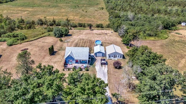 Peace and Privacy Await! Nestled on a quiet, peaceful country road, this delightful bungaloft offers the perfect blend of rustic charm and modern comfort. With 3 spacious bedrooms and 1 full bath, this inviting home is ideal for families, hobbyists, or anyone seeking a serene escape from the city. Step inside to a bright, sun-filled interior featuring a large eat-in kitchen, perfect for family gatherings and home-cooked meals. The main floor also offers a lovely living area, primary and guest bedrooms, 4 pc bath and the convenience of laundry, thoughtfully located for easy day-to-day living. Upstairs you will find a third bedroom in the spacious loft area. Recent upgrades include a newer furnace and roof, offering peace of mind for years to come. Outside, you'll find a detached 1-car garage and a 24'x32' heated workshop perfect for hobbies, creative studio space, or any number of possibilities. The spacious lot boasts an above-ground pool for summertime enjoyment and plenty of room to relax or entertain under the open sky. This rural gem is full of possibilities.