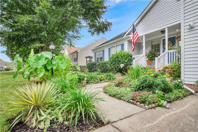 Welcome to this beautiful move-in ready 3-bedroom/2 baths gem with hardwood floors & new large deck in the desirable Williamsburg Bluffs community! With 1,824 sq. ft. of single-level living, this home boasts hardwood floors & carpeted bedrooms with beautiful tiled bathrooms. Upon entering, a large, light-filled living room with two French doors and cathedral height ceiling. Remodeled kitchen with full height pantries. The spacious primary suite has been enlarged with floor to ceiling built-in closets and picture window alcove. A versatile room off of the dining room is the perfect place for the kids to play or to make into a study or reading room. Step outside to a brand-new, oversized deck overlooking your private landscaped and fenced backyard ?ideal for gatherings or peaceful evenings. Across the street, enjoy neighborhood pool, playground, tennis and pickleball courts. Families will love the top-rated York County schools, and the location can't be beat?only minutes to Colonial Williamsburg, shopping, dining, and quick interstate access. Move-in ready and charming, this home combines modern updates with comfort and convenience. Don't miss the chance to make it yours!