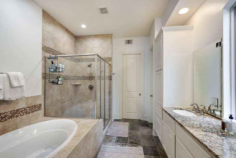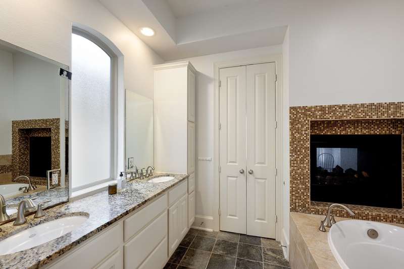Located in this lovely Mediterranean gated community, this patio home has first floor living, opening to a patio/deck, and 3 bedrooms plus a gameroom and a study. The kitchen has granite counters, tile backsplash, SS and gas appliances, a breakfast bar and pendant lighting. The dining room has a built-in decorative cabinet, and opens to the living area. The large primary suite has double-sided fireplace (opening to bath), dual vanities, separate shower w/ seat, and tub. This home has everything you need. The HOA fee includes water, trash, and automatic gate access. Located near Durham Drive within close proximity to premier shopping, dining, and entertainment! All info per Seller.