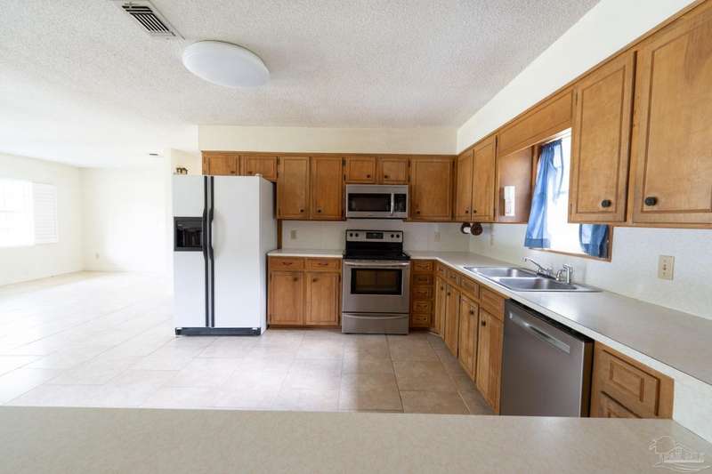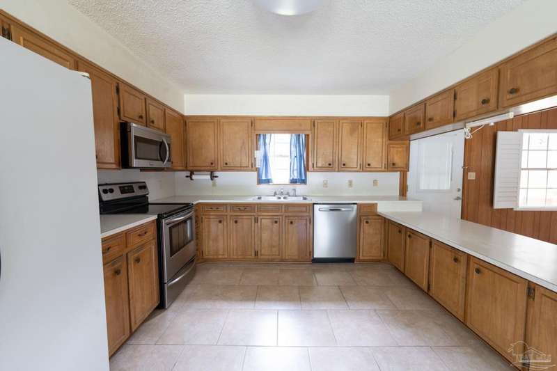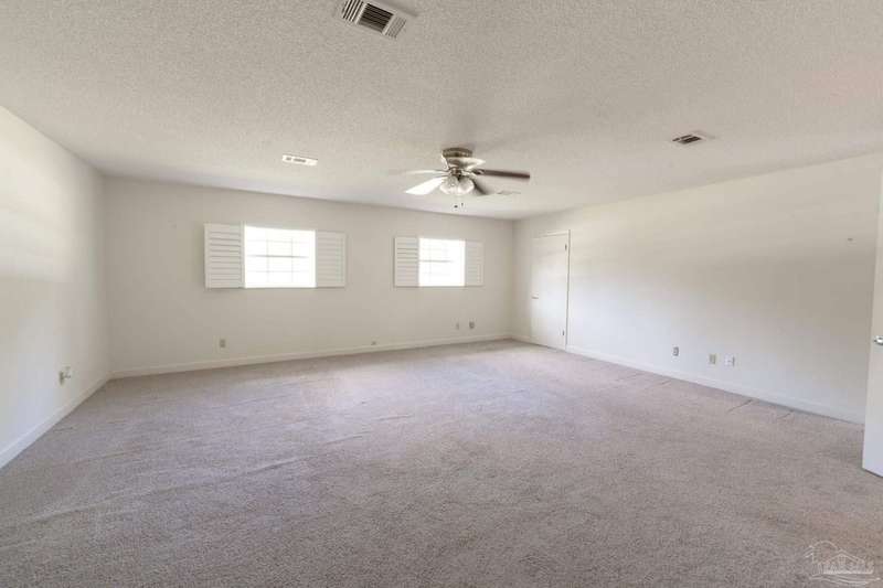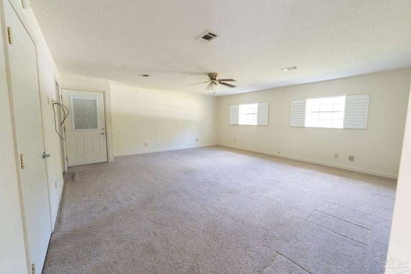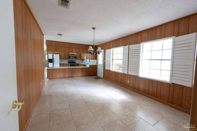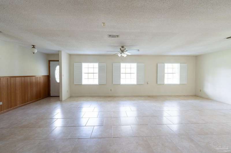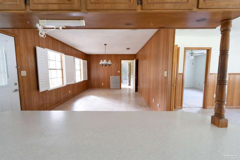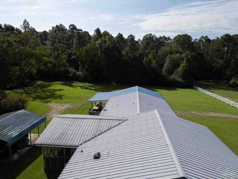 Rare opportunity in Cantonment - approx. 10 acres with gated access and ~660 feet of frontage along Hwy 297A, offering a combination of privacy, usable acreage, and potential for future development. The approach to the property opens with a spring-fed pond and then transitions into a mix of open fields and mature trees. Land features include multiple outbuildings and a large workshop with 7,000-lb lift, crane, overhead doors, compressor, vent fan, and second-story storage. Portions of the parcel include mapped wetlands; buyer should verify exact boundaries and any permitting requirements. The property is currently zoned LDR (Low Density Residential) within Escambia County. Seller indicates potential for rezoning to LDMU based on surrounding land uses; buyer responsible for confirming feasibility and process with Planning & Zoning. Existing improvements include a 1-story ranch-style residence (5 bedrooms / 3 baths) on slab with metal roof, screened rear porch, covered patio, interior laundry, and attached 1-car garage. The home and outbuildings convey as-is and may be used, renovated, or replaced depending on the buyer's preferred use. Horses are permitted under current zoning, and the layout supports a wide range of use cases including private recreational living, small-scale agricultural use, equestrian, or redevelopment subject to county approval. Access is controlled by electric gate. Utilities include septic system. Pond frontage and pond view located onsite. Construction details and systems include block exterior, metal roof, central electric HVAC, geothermal open loop system, ceiling fans, interior shutters, built-ins, dishwasher, refrigerator, smooth-top range, and cover