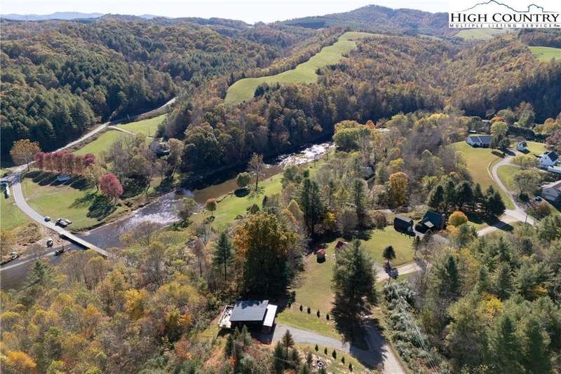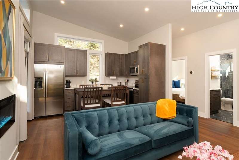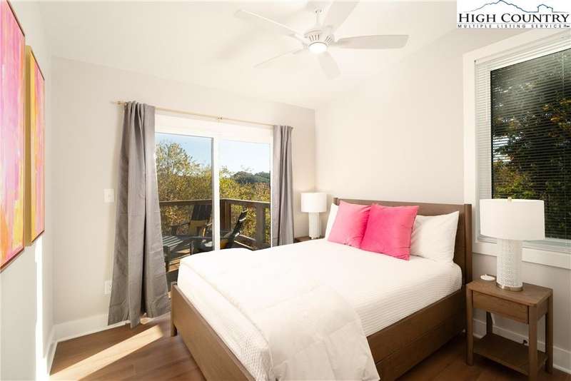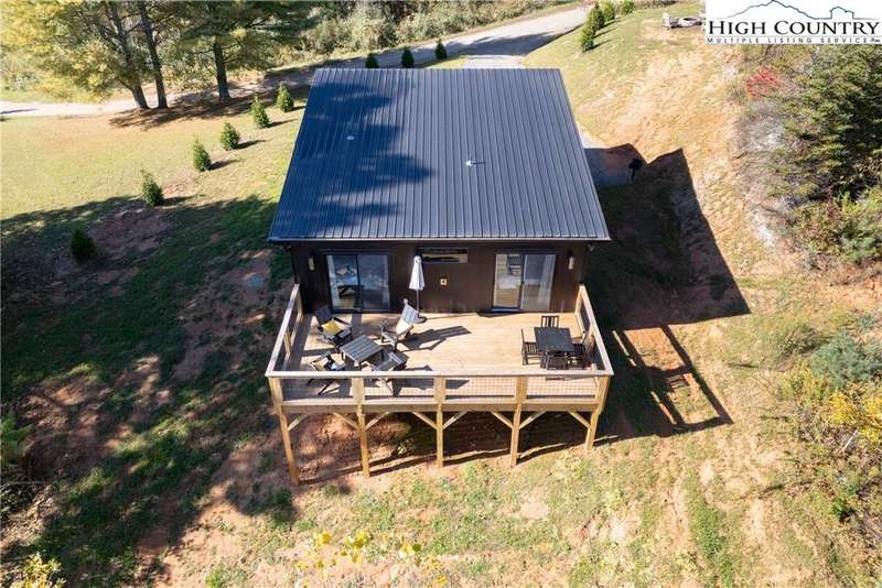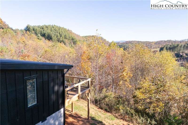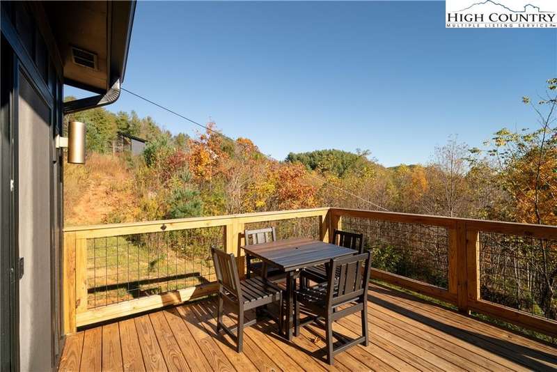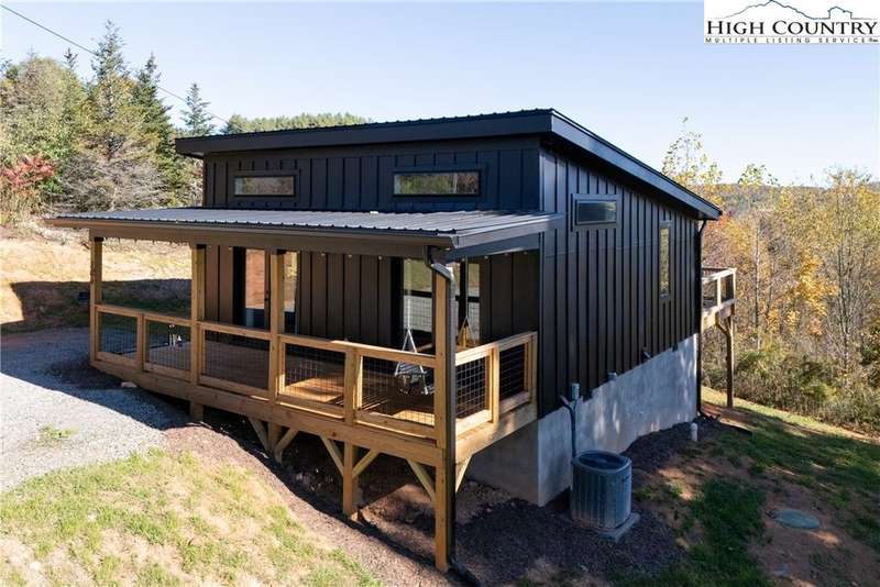 This modern mountain home delivers on maximizing light and views with large windows and vaulted ceilings throughout. Completed in 2025, the modern decor creates a sense of calm and allows you to focus on relaxation. Enjoy the views from both inside the home and outside on the 300 sq ft deck overlooking rolling mountains and long range peaks in the distance. The front porch is a great spot for sunsets and the adjacent fire pit area with Adirondack chairs is a great place for connecting with friends and family while roasting marshmallows and star gazing. The home features an open concept living room with dining and gourmet kitchen all with vaulted ceilings. The kitchen has expansive cabinet space, GE stainless appliances, and quartz countertops. The two equal sized bedrooms feature nice size closets and sliding doors to access the deck. The bathroom is sleek and modern with quartz countertops and porcelain tile floors and shower. The home is fully furnished and comes complete with a fully stocked kitchen and bed and bath linens. Short term rentals are allowed and the home is currently on AirBNB. The New River is within walking distance and is well known for its multiple recreation opportunities including kayaking, tubing, fishing, and more.
