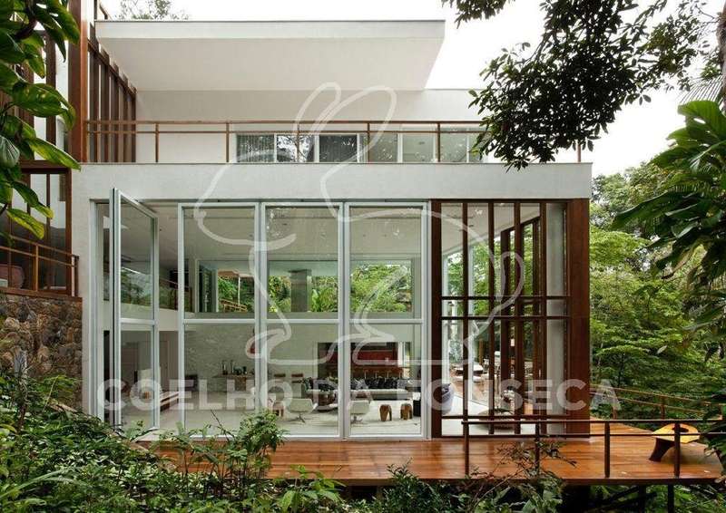 Casa de praia no litoral paulista com arquitetura contemporânea pensada para trazer o verde para dentro de casa assinada por Sandra Picciotto, faz jogo geometrico com os palnos arquitetonicos e surpreende pela seleção impecável do conteudo. A área gourmet e piscina integrada a cozinha principal traz união entre os espaços de forma a criar uma área de convivência espaçosa e descontraida.