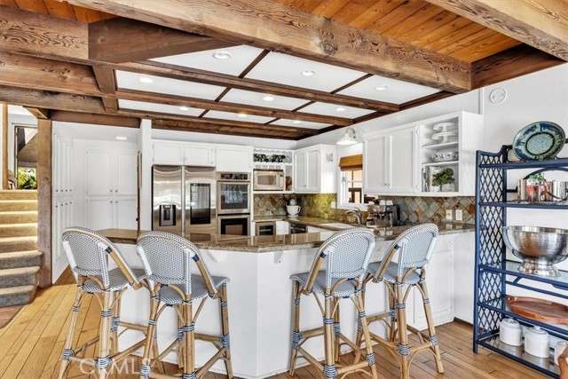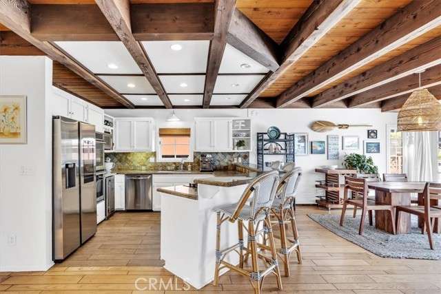 PRICE REDUCED! Best price per square foot in this neighborhood. Just a few blocks from the shimmering Pacific Ocean in the highly sought-after Southwest area, on a wider-than-average street between T Street and Lost Winds beaches. This charming and distinctive residence with ocean views from multiple decks masterfully crafted by a local builder with gorgeous high beamed ceilings. The expansive, multi-level floor plan is thoughtfully designed to provide both flexibility and comfort. The main level showcases an inviting open-concept layout featuring a bright kitchen with stainless steel appliances, double ovens, a wine refrigerator, and granite counters. The adjoining dining area, accented by a blend of wood and Spanish tile floors and beautiful beamed ceilings, flows seamlessly onto a charming deck with ocean views perfect for morning coffee or sunset dinners. A sunken living room with floor-to-ceiling picture windows and a stunning stone wood-burning fireplace creates a cozy yet elegant gathering space, while the spacious family room is bathed in natural light from impressive skylights overhead. Upstairs, the primary suite is a true retreat, offering complete privacy along with its own private deck, a relaxing sitting area, a generous walk-in closet, and an en-suite bath featuring a jetted tub, separate shower, and dual vanities. A secondary upstairs bedroom with its own ocean-view deck and en-suite bath could easily serve as an additional primary suite ideal for guests or multi-generational living. On the lower level, you ll find two additional bedrooms that open directly to the private backyard oasis and share a well-appointed bathroom. A large office or studio provides the perfect space for working from home or pursuing creative passions. The backyard is a serene haven for gardening enthusiasts and entertainers alike, boasting mature fruit trees, a dedicated herb and vegetable garden, a cozy fire pit for gathering under the stars, and even a workshop shed for hobbies and projects. Enjoy the coastal lifestyle to the fullest walk the trail just minutes away to watch the sunset, ride your golf cart throughout the neighborhood for fun seasonal activities, or surf the renowned Trestles surfing spot nearby. Don t miss this rare opportunity to own a truly unique coastal residence just steps from the Pacific Ocean, where timeless design, flexible living spaces, and outdoor serenity come together in one unforgettable home.