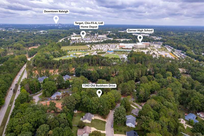 Welcome to 1343 Old Buckhorn Road ? a fresh, move-in ready home on nearly half an acre with no HOA, just minutes from downtown Raleigh. With 4 bedrooms, 2.5 baths, and a huge fenced backyard, you'll have space and privacy to relax, play, or host friends. All while still being only a mile from shopping, dining, and everyday conveniences.Inside, the layout flows easily between living, dining, and kitchen areas. Upstairs, the large primary suite offers a private retreat, and the updates are already done: NEW LVP, NEW CARPET, FRESH PAINT, updated kitchen, refreshed baths, plus a brand-NEW ROOF and SIDING. All this in a prime location: -1 mile to Garner Town Square (Target, Lidl, Home Depot), -3 miles to White Deer Park and Lake Benson, and just -5 miles to Downtown Raleigh. A RARE opportunity to enjoy almost half an acre and modern updates ? with no HOA.