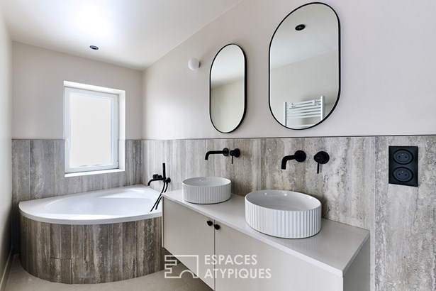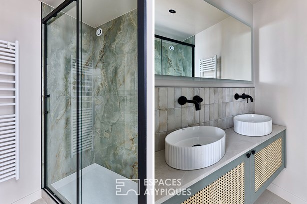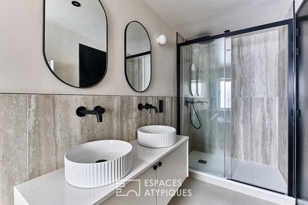 Spread over four levels totaling 157.23 m2 (151.80 m2 Carrez) and topped with a 40 m2 rooftop, it stands out for its elegant and contemporary layout.