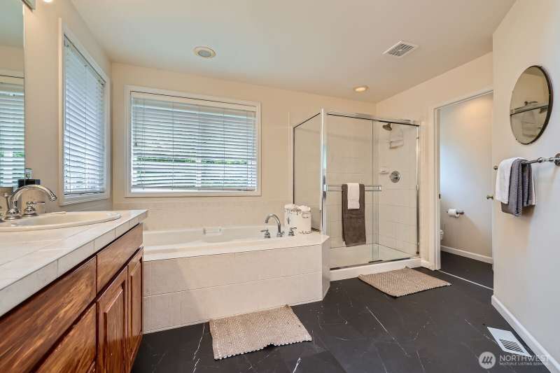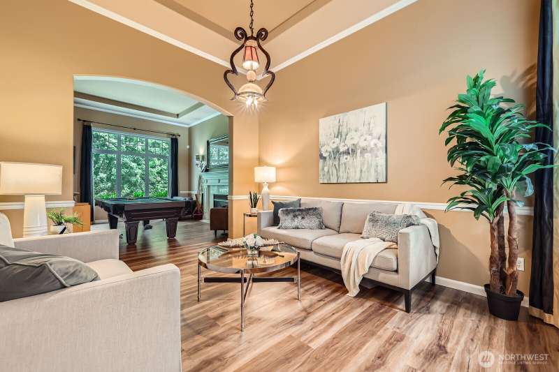 DRAMATIC PRICE IMPROVEMENT!!! Unique 2-story, 2990sf home located on a .9 acre lot in a cul-de-sac in the Issaquah School System. This 4-bed, 3-bath home offers privacy, comfort, and flexibility. Soaring ceilings, new flooring and carpet, stylishly updated baths. Formal living and dining rooms feature tray ceilings, a gas fireplace, and elegant trim. The kitchen boasts stainless appliances, a center island with gas cooktop, and walk-in pantry. Cozy family room with brick fireplace and custom built-ins. The vaulted primary suite includes a spa-like bath and his and hers closets. Main floor den/potential bedroom with bath. Expansive patio, lush outlooks, 3-car garage, and RV & boat parking available.