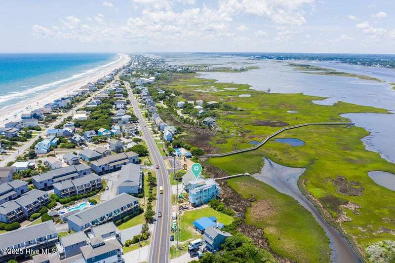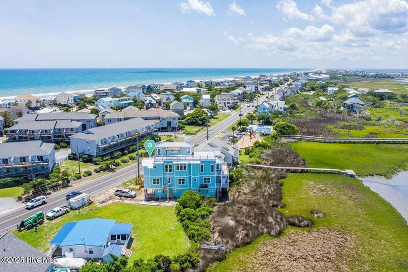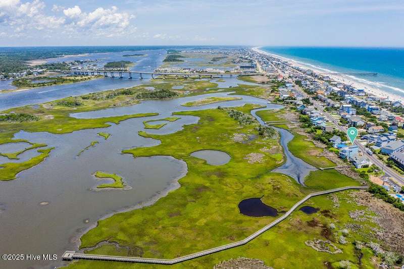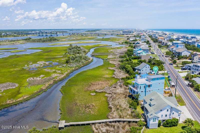 Welcome to your dream coastal retreat in the heart of Surf City! Built by the premier luxury developer in the area, this stunning 3,959 square foot residence offers stylish and eloquent living with breathtaking panoramic views of the Intracoastal Waterway, the iconic high-rise bridge, and the Atlantic Ocean. With 6 spacious bedrooms, 5 full bathrooms, and 2 half-bathrooms, there is room for everyone to relax in style and comfort. No detail has been overlooked in this custom-built home, which boasts top of the line finishes including quartz counters, Cali Luxury Vinlyl flooring, and tiled backsplashes in the kitchn and bar areas. In addition, the home features large oversized windows, wainscoting and upgraded tray ceiling and toe kick lighting in the main living spaces. Take in the sunsets relaxing in the jacuzzi tub located the first floor sound facing deck or relax on the rooftop deck featuring panoramic sunset and sounds views. Take advantage of the large rec room featuring wet bar with flip up window, perfect for entertainment.In addition to its stunning design and unbeatable views, this home offers exceptional investment potential. Located in the middle of town, shops, restaurants and the beach access are a short walk, bike ride or golf cart ride away. The spacious garage could potentially fit 4+ cars plus a golf cart, With additional parking in the driveway, it easily accommodates large families or groups, perfect for short term rentals. The properties size, layout, and premium finishes and entertainment spaces make this a premier destination for renters seeking a high end beach experience. Whether you are looking for a primary residence, a second home or rental investment, this property has it all. For boaters out there, dry slips can be purchased at the Topsail Island Yacht Club just a short bike or golf cart ride away.