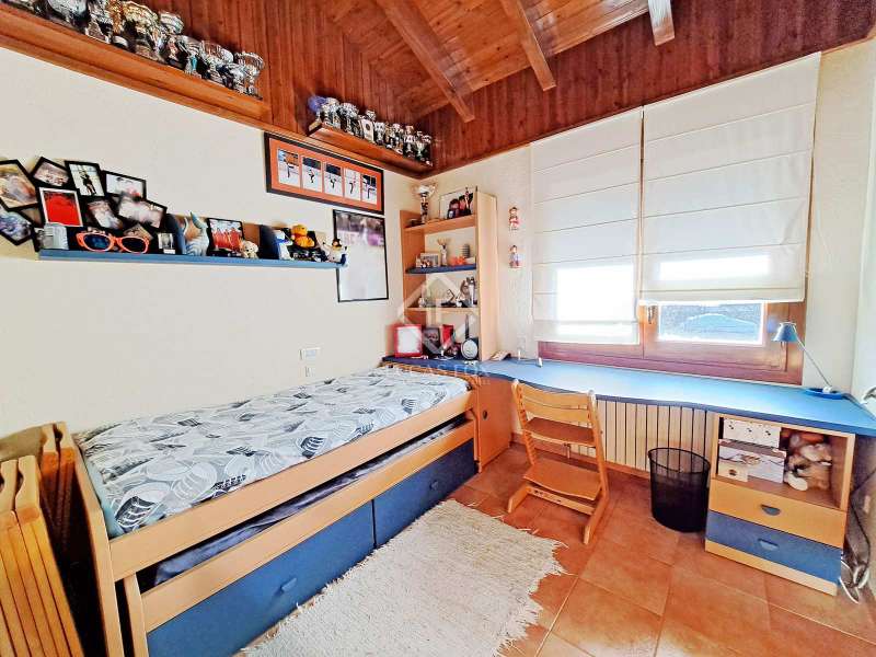 Detached house with private garden located in the Puigcerdà lake area, two minutes from centre. The house is distributed in two floors. In the floor we find two spacious bedrooms, a full bathroom , a games room room, a boiler room and a large garage. The upper floor is occupied by the day area with a large closed kitchen, a dining room that gives us direct access to the kitchen and the living room dining room with fireplace . On this floor we also have a night area with three bedrooms, one double and two singles. All the rooms are exterior, in addition, each room in the day area has direct access to the garden. The house has a mezzanine that could be used as a new suite-type room since it has a full bathroom . The heating is diesel.