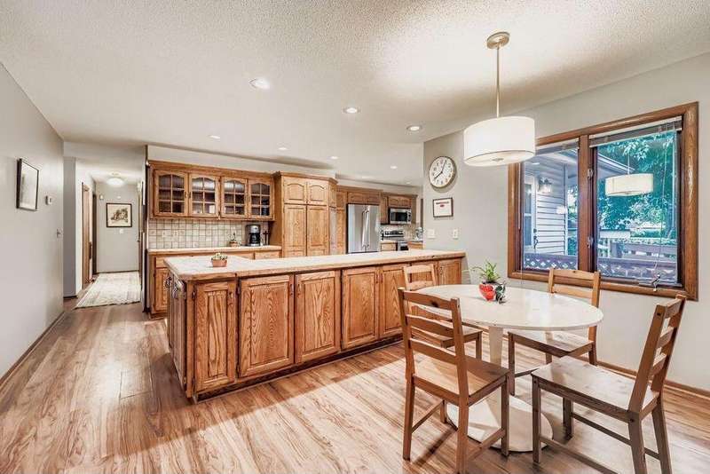 Welcome to this spacious rambler on a quiet street. This home features plenty of room for entertaining inside and out! Enjoy 3 bedrooms on the main level featuring hardwood floors along with an updated full bathroom, a formal dining room, generous sized kitchen with incredible counter space, an informal dining room and living room with a fireplace. Also, from the living room you have easy access to the outside deck through a sliding door. The lower level offers a very large family room with another fireplace. This space could easily serve both as a play area/game area and a TV area. Also on this level is a 4th bedroom, ½ bath, laundry, and a large storage space. Outside is a huge fenced in yard, perfect for yard games and fun! Priced to sell quickly.