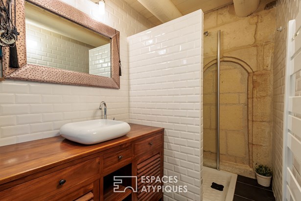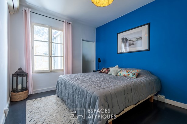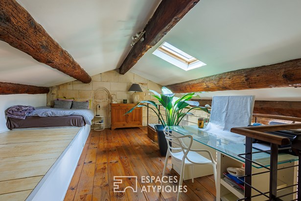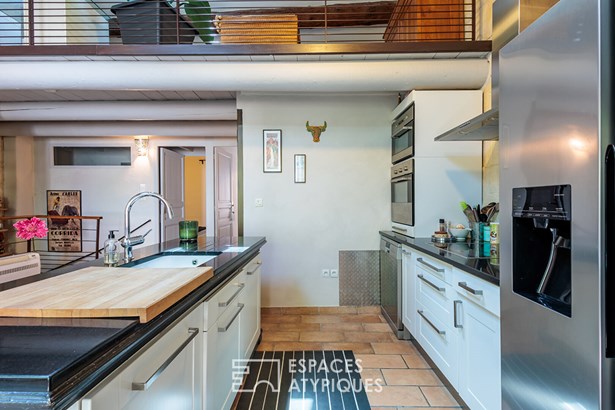 On the first floor, the living room with open kitchen, augmented by a mezzanine, is flooded with natural light and opens onto a green environment. Two bedrooms and a shower room complete this level. On the ground floor, a former ironworks workshop has been converted with a kitchen, shower room, courtyard, and separate entrance, allowing the creation of a complementary activity or an annex dwelling. A terrace development permit offers further potential for development. In the immediate vicinity of shops, restaurants, and emblematic cultural sites.