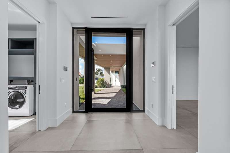 This breathtaking modern estate, built in 2022 by Rothrock Construction, boasts 180 feet of Intracoastal frontage with stunning blue-water views. Situated on a private 0.5-acre lot with no HOA, it offers sleek architecture, expansive glass walls, soaring ceilings, and high-end finishes. The open-concept design features a gourmet kitchen with a gas stove, while a separate guest house provides additional privacy for visitors. The Seller has upgraded all the landscaping for enhanced beauty and seclusion, adding premium artificial turf throughout the backyard for a lush, low-maintenance appeal. The fire pit has been upgraded to a sleek linear design, perfect for entertaining or relaxing. Priced to sell, this waterfront masterpiece is a rare opportunity!