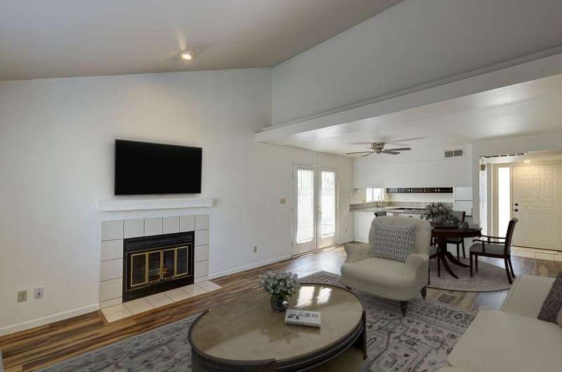 Ground floor condo in prime NE Fresno location. This 2 Bedroom, 2 Bath home features an open concept living & dining and the kitchen has breakfast bar seating.Granite countertops in both the kitchen and bathrooms. Rooms are large, one with bathroom & 3 closet areas, the second with hall bath and 2 closet areas. Condo also has two patio areas with the second patio area overlooking the pond area. Not only is this a roomy two bedroom unit, the laundry hookups are inside, and also has a one car garage with storage space. Visit Lakeside condominiums and see all the beautiful renovations currently underway that seller has and is paying for all.New flooring in living room, hall and bathroom.New water heater.Installed newer HVAC.New exterior paint completeRoof and siding installment complete.Installation of new garage doors will get completed.