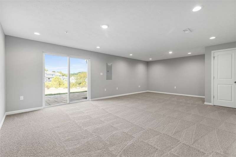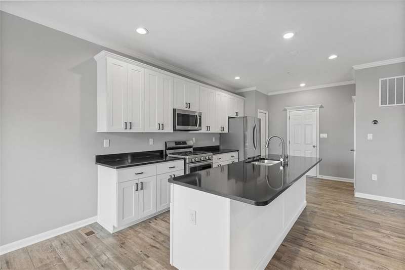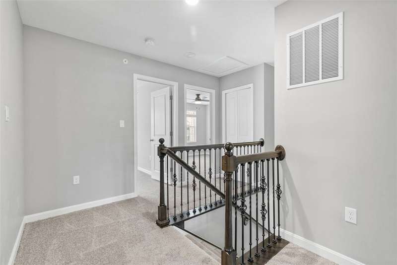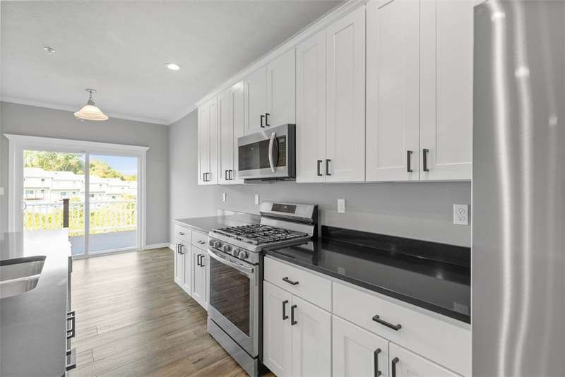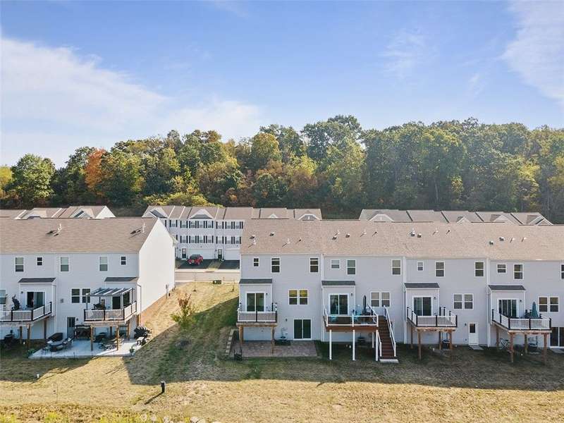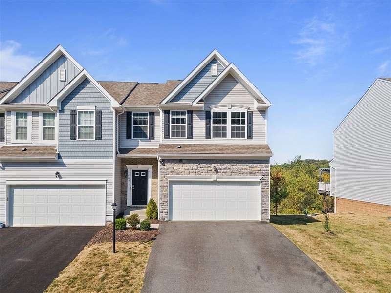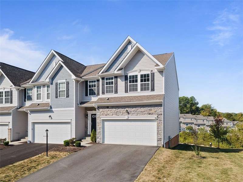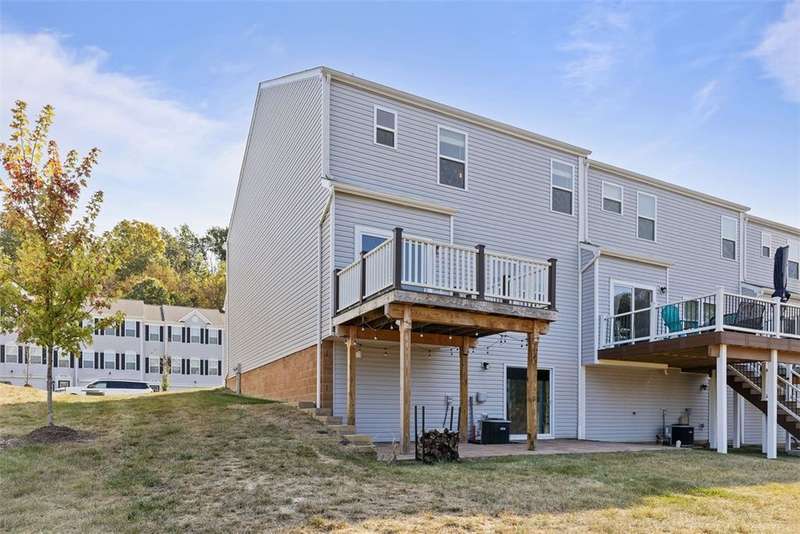 End-unit townhome w/open-concept layout. Better than NEW! Freshly painted and all carpets just replaced. Main level features LVP flooring, upgraded white kitchen cabinets, quartz counters, black hardware, and stainless appliances?including new refrigerator. Reverse Osmosis water system at kitchen sink. Dining area opens to a low-maintenance TREX deck. Attached 2-car garage off kitchen includes additional fridge. Spacious entry leads to expansive living room with custom rattan blinds. Rod iron railings add an open feel. Primary suite boasts tray ceiling, ceiling fan, custom blinds, large walk-in closet, and ensuite with double bowl sinks, soaking tub and shower. Convenient 2nd-floor laundry. 2 additional BDs with spacious closets, and ceiling fans. Finished walk-out lower level includes 3rd full bath, large rec space, storage room, and access to oversized paver patio. Large rear yard for entertaining. Google Home doorbell, Keyless Entry and ADT security. Close to 22/30, 376 & shopping!