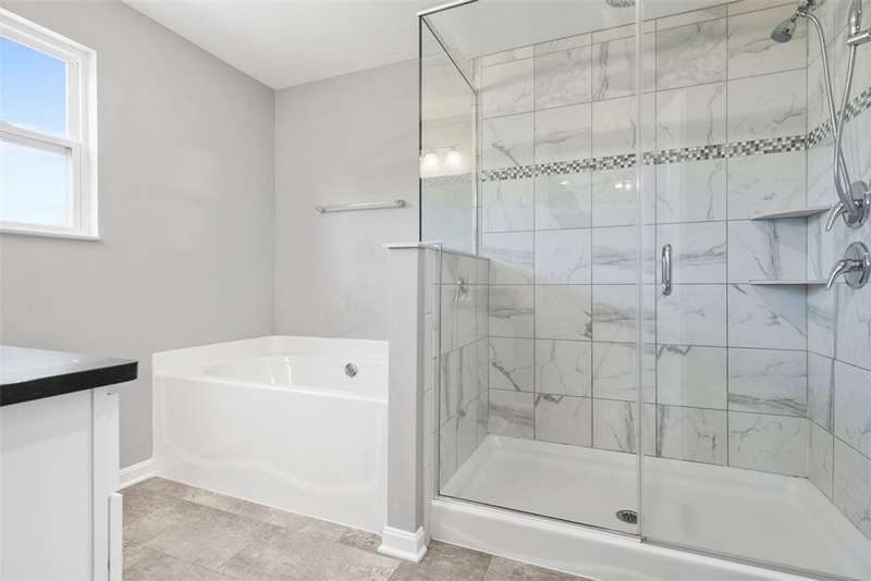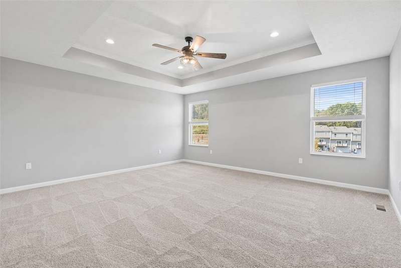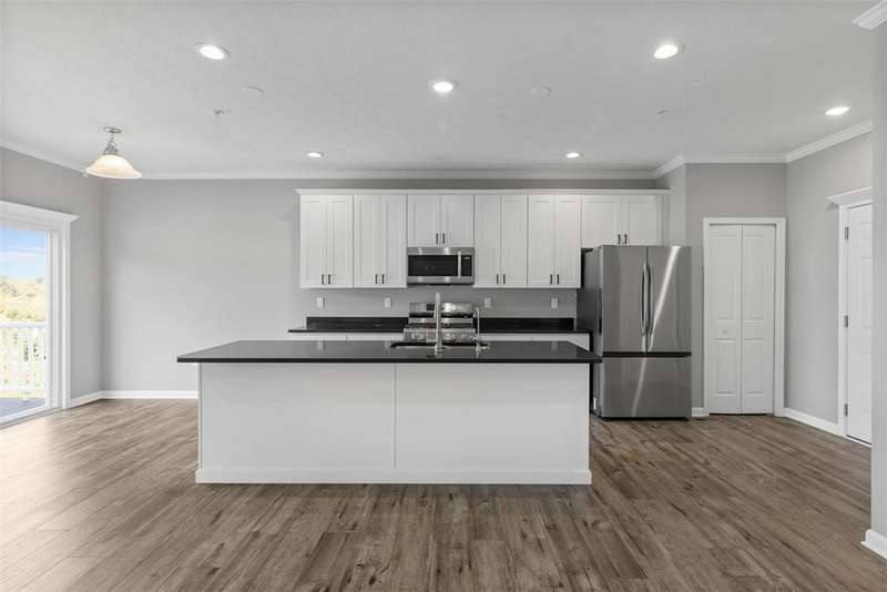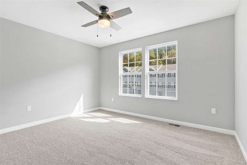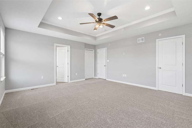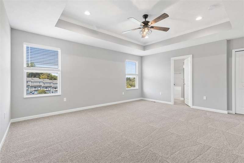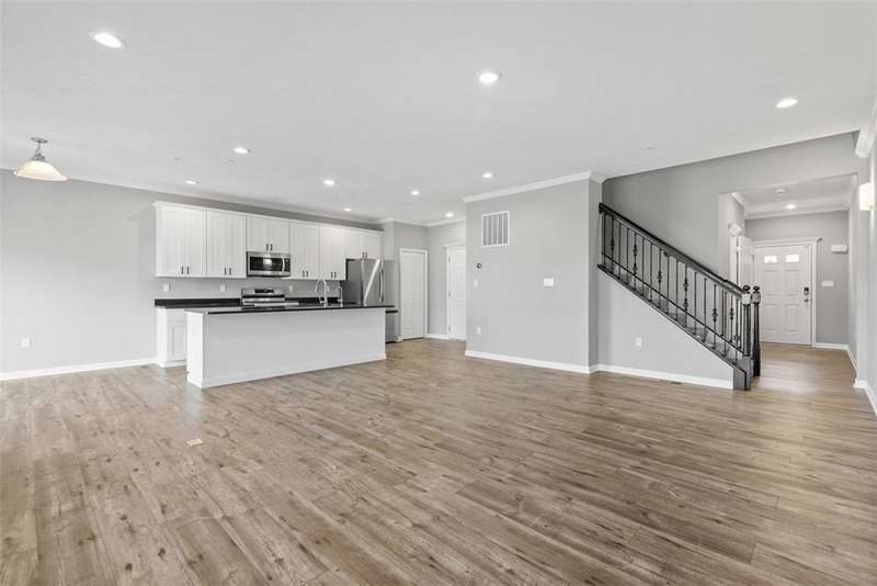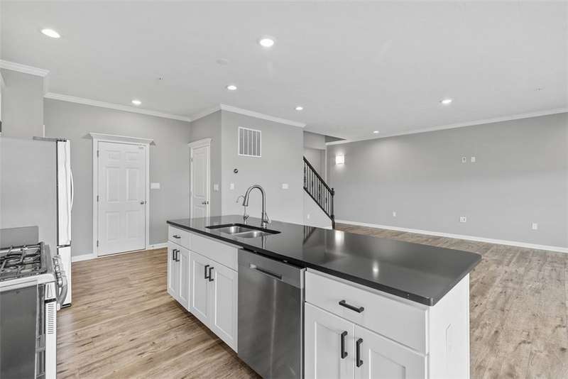 End-unit townhome w/open-concept layout. Better than NEW! Freshly painted and all carpets just replaced. Main level features LVP flooring, upgraded white kitchen cabinets, quartz counters, black hardware, and stainless appliances?including new refrigerator. Reverse Osmosis water system at kitchen sink. Dining area opens to a low-maintenance TREX deck. Attached 2-car garage off kitchen includes additional fridge. Spacious entry leads to expansive living room with custom rattan blinds. Rod iron railings add an open feel. Primary suite boasts tray ceiling, ceiling fan, custom blinds, large walk-in closet, and ensuite with double bowl sinks, soaking tub and shower. Convenient 2nd-floor laundry. 2 additional BDs with spacious closets, and ceiling fans. Finished walk-out lower level includes 3rd full bath, large rec space, storage room, and access to oversized paver patio. Large rear yard for entertaining. Google Home doorbell, Keyless Entry and ADT security. Close to 22/30, 376 & shopping!