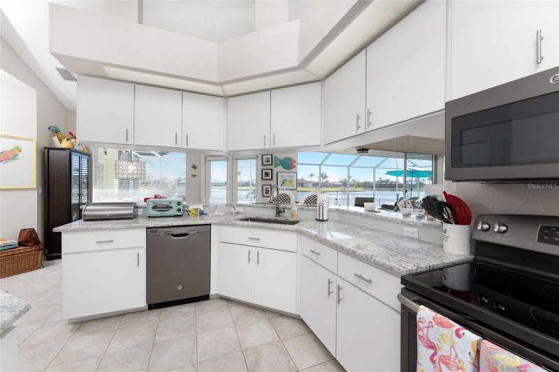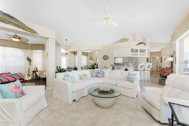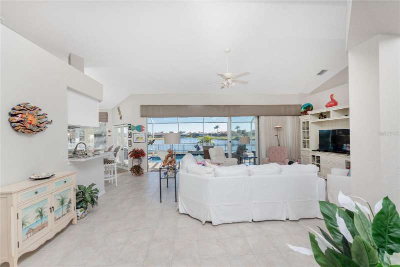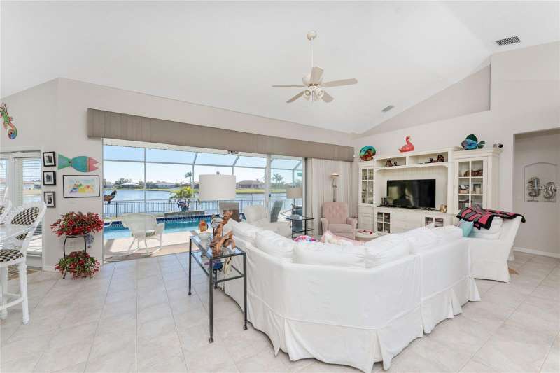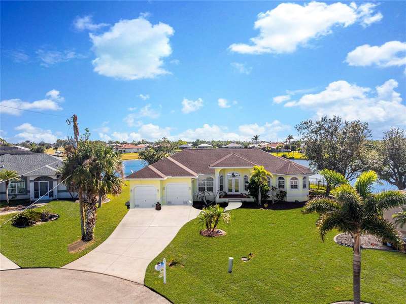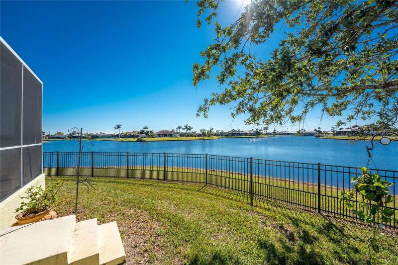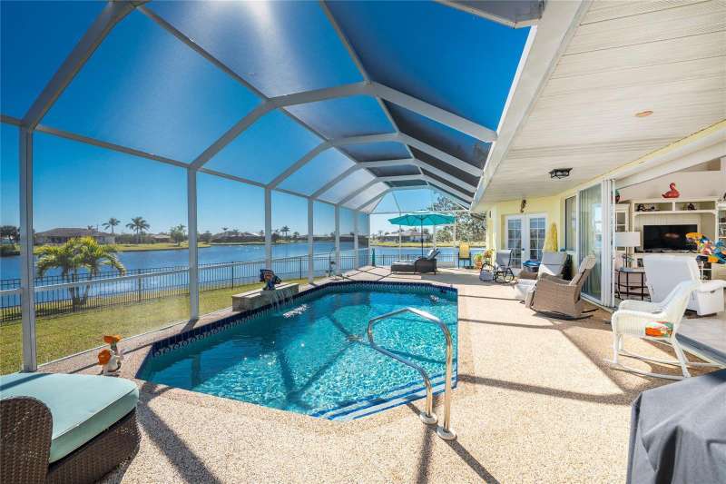 Embrace serene lakefront living with this stunning 3-bedroom, 2-bathroom heated pool home, perfectly positioned at the end of a peaceful cul-de-sac in the desirable, deed-restricted community of Burnt Store Lakes. With breathtaking panoramic lake views, this exceptional tip lot property offers the ultimate in tranquility and privacy. Start your day with a brilliant sunrise over the lake, and wind down with picturesque sunsets, all from the expansive southeastern-facing pool deck. The perfect way to relax or entertain while taking in the sights of the local wildlife. With sliding doors that open from the generous great room to the outdoor space, you’ll enjoy seamless indoor-outdoor living in this true tropical oasis. Inside, the open floor plan combines a spacious great room, dining area, and den with high ceilings and tile floors throughout, making it an ideal space for gatherings or quiet moments of relaxation. The kitchen features elegant stone countertops, stainless steel appliances, a deep pantry, breakfast bar and deep sink. French doors from the dinette area lead to the lanai, where you can enjoy meals and lounge by the pool. The home also features a dedicated laundry room with 3 month old Maytag washer and dryer, as well as ample storage space. The Primary suite is a true retreat, with two walk-in closets, a beautiful bath featuring separate tub and shower, dual pedestal sinks, and plantation shutters. You'll enjoy relaxing in this peaceful space, surrounded by lush views. The guest bedrooms are generously sized with large closets, offering comfort and convenience for family or guests. The guest bath features a combination tub and shower with a high top vanity. Recent updates include a 3 year old roof, pool resurfacing with attractive pebble rock finish and waterfall, a fenced rear yard, recently replaced pool pump, electrical wiring for a generator, and freshly painted exterior paint make the home both functional and stylish. This home also features an assumable whole house solar power system. Burnt Store Lakes is a beautiful Deed Restricted Community with 11 freshwater lakes and many new custom homes being built throughout the neighborhood. Public water and sewer are in place. Burnt Store Lakes Residents enjoy the Community Park which has covered picnic benches, a playground and restrooms. There is a kayak ramp for Residents only that accesses Charlotte Harbor and the incredible wildlife in the Charlotte Harbor Aquatic Preserve such as Manatees, porpoises, sea turtles and an abundance of game fish. Next door at Burnt Store Marina, SW Florida’s full-service deep-water marina, restaurants are open to the public and amenities such as golf and boat dockage may be available. It’s just a short drive to Downtown Punta Gorda, one of Florida’s best small towns, with plenty of restaurants and town activities to enjoy. Or to Cape Coral, one of the fastest growing cities in Florida. It doesn’t get any better than this to live your dream Florida Lifestyle.