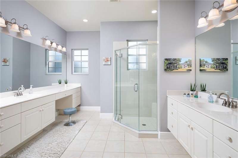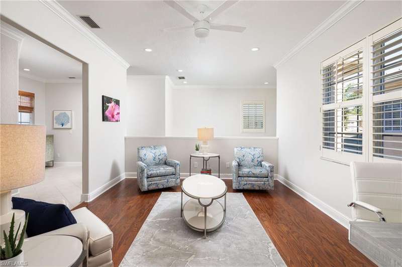 Wake up to wide lake and golf course views, highlighted by sparkling fountains, and unwind each evening from the comfort of your expansive screened lanai the perfect setting for relaxing or entertaining. With over 2,400 sq. ft., this 3-bedroom plus den, 3-bath home blends spacious living with thoughtful updates and a 2-car garage. Inside, enjoy the peace of mind that comes with a newer A/C system, updated electrical with LED lighting, and electric roll-down hurricane shutters for storm protection at the push of a button. Fresh interior paint, new ceiling fans, custom closets, and crown moldings enhance every room. The home features a blend of hardwood, luxury vinyl in main living areas, and new carpet in select bedrooms creating both style and comfort. An epoxy, easy-to-maintain garage floor completes the updates. Each bedroom offers its own private bath, and the laundry room features cabinets and a sink for everyday convenience. Life in Vintage Reserve includes access to its own p