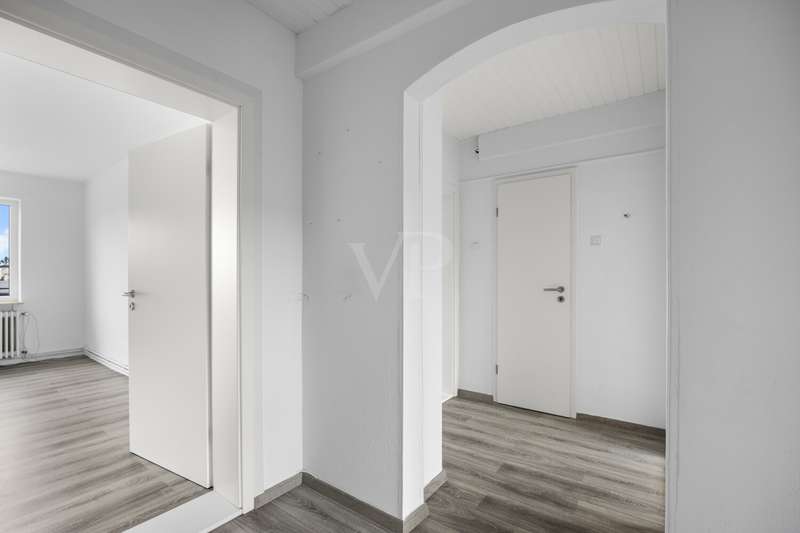 This practical apartment, built in 1963, has a living space of approx. 67 m² and a total of 3 rooms. The room layout is functional and is suitable for couples, small families or individuals who value a clearly laid out and easily usable living space. The apartment is located on the 3rd floor of an apartment building without an elevator. Those who have no problems climbing stairs will benefit from a comparatively private location here, as the apartment is high up. You can reach the apartment, which is in a well-kept but rather basic condition, via the stairwell. The living room is the central room and offers enough space for everyday life. Opposite is the kitchen, which is equipped with a gas stove and has PVC flooring. The kitchen is functional and offers space for individual design according to your own ideas. The two bedrooms can be accessed separately and can be used flexibly, for example as a children's room, guest room or work area. The floors in the living rooms are covered with laminate and the doors are in good condition and functional. The balcony, which extends over two rooms and offers a largely secluded area, is particularly practical. The bathroom is equipped with a bathtub and tiled to ceiling height. Heating is provided by central heating, which ensures even heat distribution. A cellar compartment belongs to the apartment and offers additional storage space. There is no allocated parking space, but there are plenty of public parking spaces available in the surrounding area. The location of the apartment is practical: public transport is easily accessible, as are shopping facilities, doctors, schools and various leisure facilities. The inner-city location makes it possible to reach many destinations on foot or by bicycle. All in all, this apartment is a pragmatic option for anyone who wants to live centrally and is looking for a solid basis for their own design. The apartment is ready for immediate occupancy and is available for viewing.