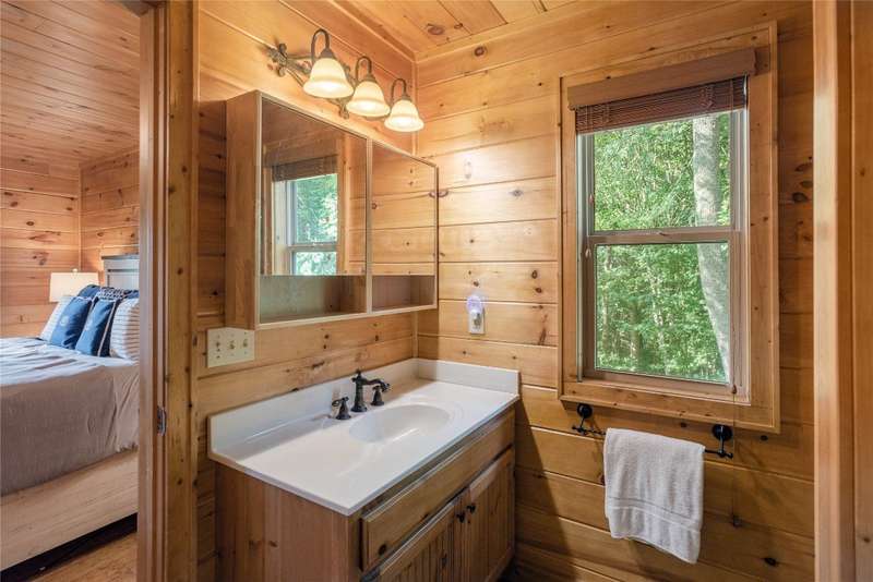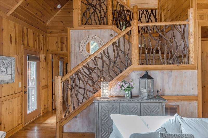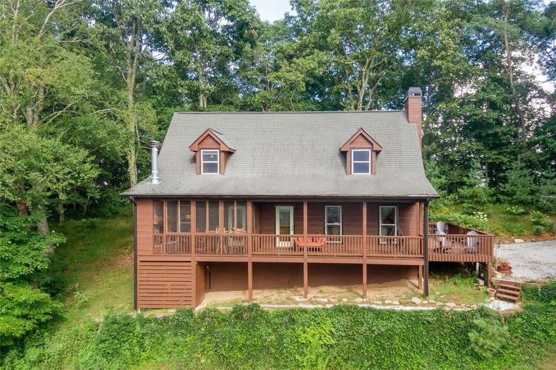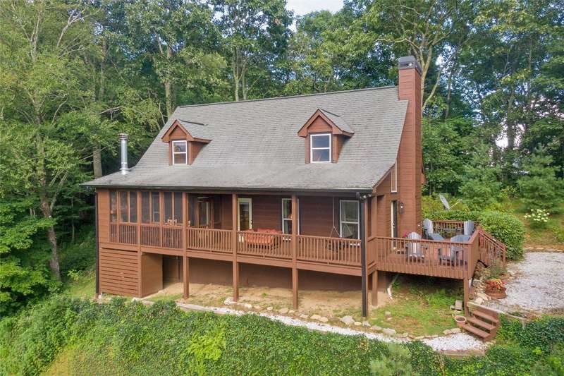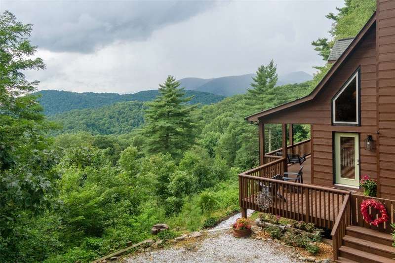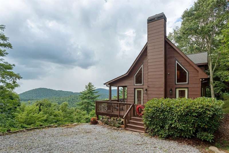Set high on the ridgeline at over 4,400 feet, this two-bedroom, two-and-a-half-bathroom cabin offers privacy with cool summer temperatures and sweeping long-range views - all on approximately 2.5 acres in the quiet Catspaw community. Surrounded by native trees and mountain laurels, this property is an ideal retreat for soaking in the Plateau's brilliant autumn colors - where every sunset paints the horizon in gold and crimson. Designed for comfort and ease, the property's main level includes the primary suite, kitchen, and great room, while upstairs features a second bedroom and full bathroom for guests. Two fireplaces - one indoors and one on the screened porch - provide ideal spots for cozy evenings in any season. Outside, the open deck with gas hookup simplifies outdoor cooking and entertaining while enjoying the endless views. Just 15 minutes away, Lake Glenville offers a sandy beach, boating and kayaking, and waterfall hikes, while a 30-minute drive away lies the sought-after mountain town of Cashiers, known for its charming shops, local dining spots, seasonal farmers markets, and community events. For additional conveniences, Franklin is also within easy reach by car. Offered fully furnished, this turnkey cabin is ready to move into and create a serene mountain lifestyle.