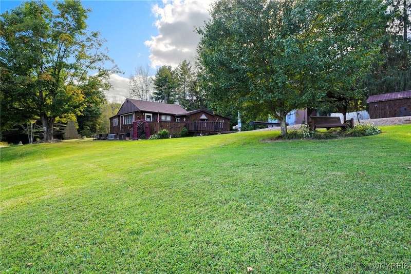 Escape to this picturesque two-bedroom "cabin" with a bonus room for a possible 3rd bedroom, nestled on just over 11 acres of stunning land, complete w an enchanting cascading creek and serene views. Centrally located with state land, Rushford Lake and Letchworth state park all just a short drive away! The cabin features a spacious layout ideal for family gatherings or weekend getaways with friends. Recent updates enhance the living experience, including and upgraded electric service, new windows, newer roof and new flooring throughout. Embrace the beauty of nature w views form every window, along with established tree stands, for the avid hunter, great hiking options and snowmobile trails for year-round fun! Whether you're seeking a peaceful retreat or year-round paradise, this home is a rare find!